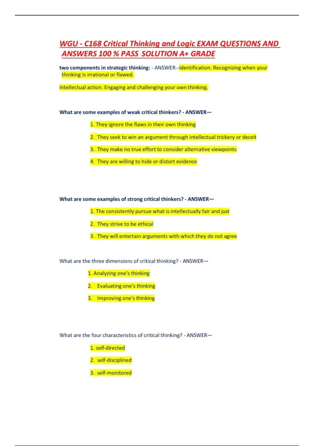 What are the four characteristics of critical thinking? - ANSWER—