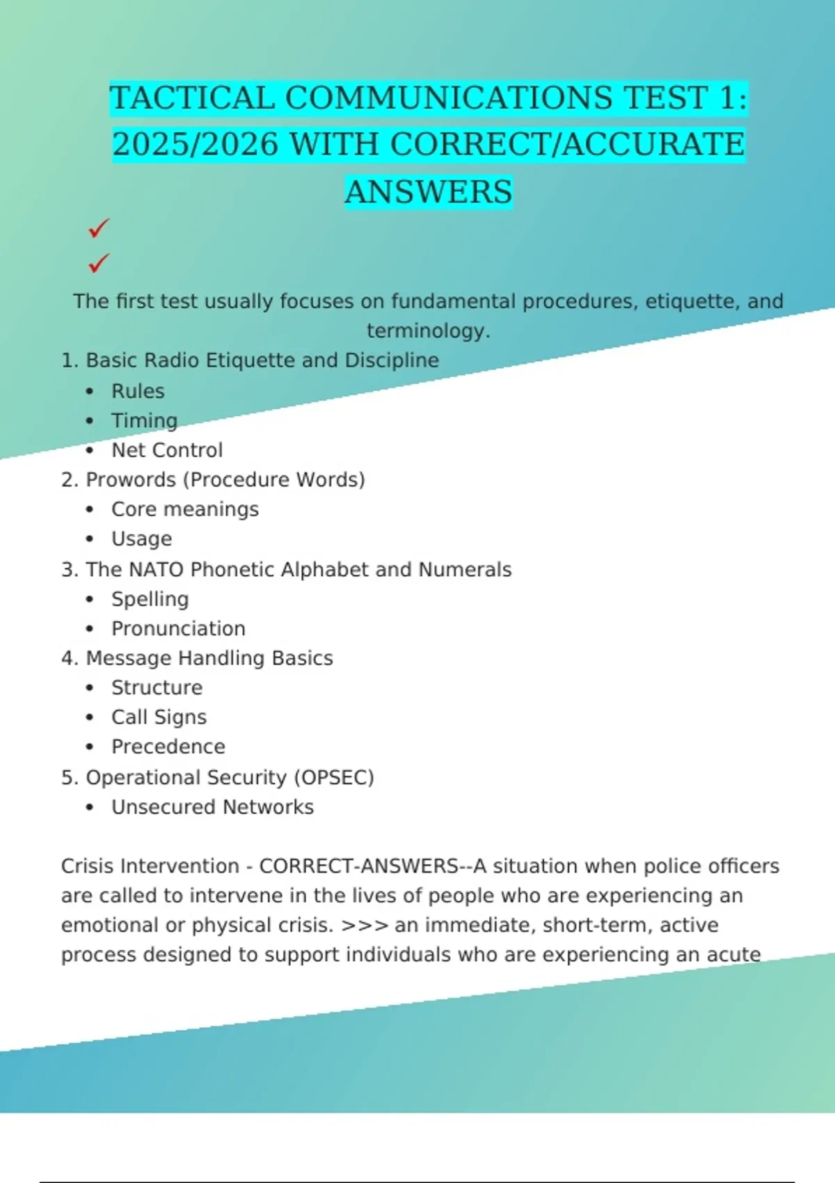 TACTICAL COMMUNICATIONS TEST 1: 2025/2026 WITH CORRECT/ACCURATE ANSWERS