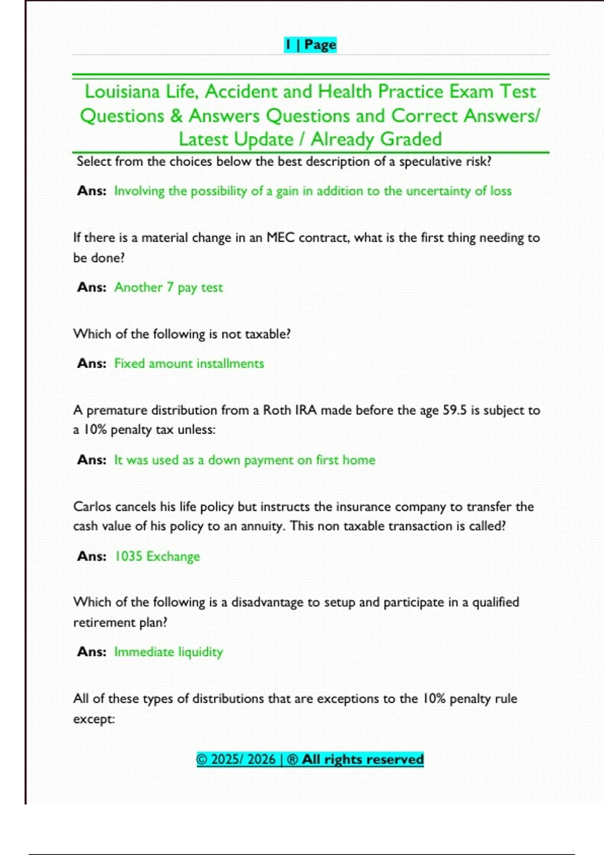 Louisiana Life, Accident and Health Practice Exam Test