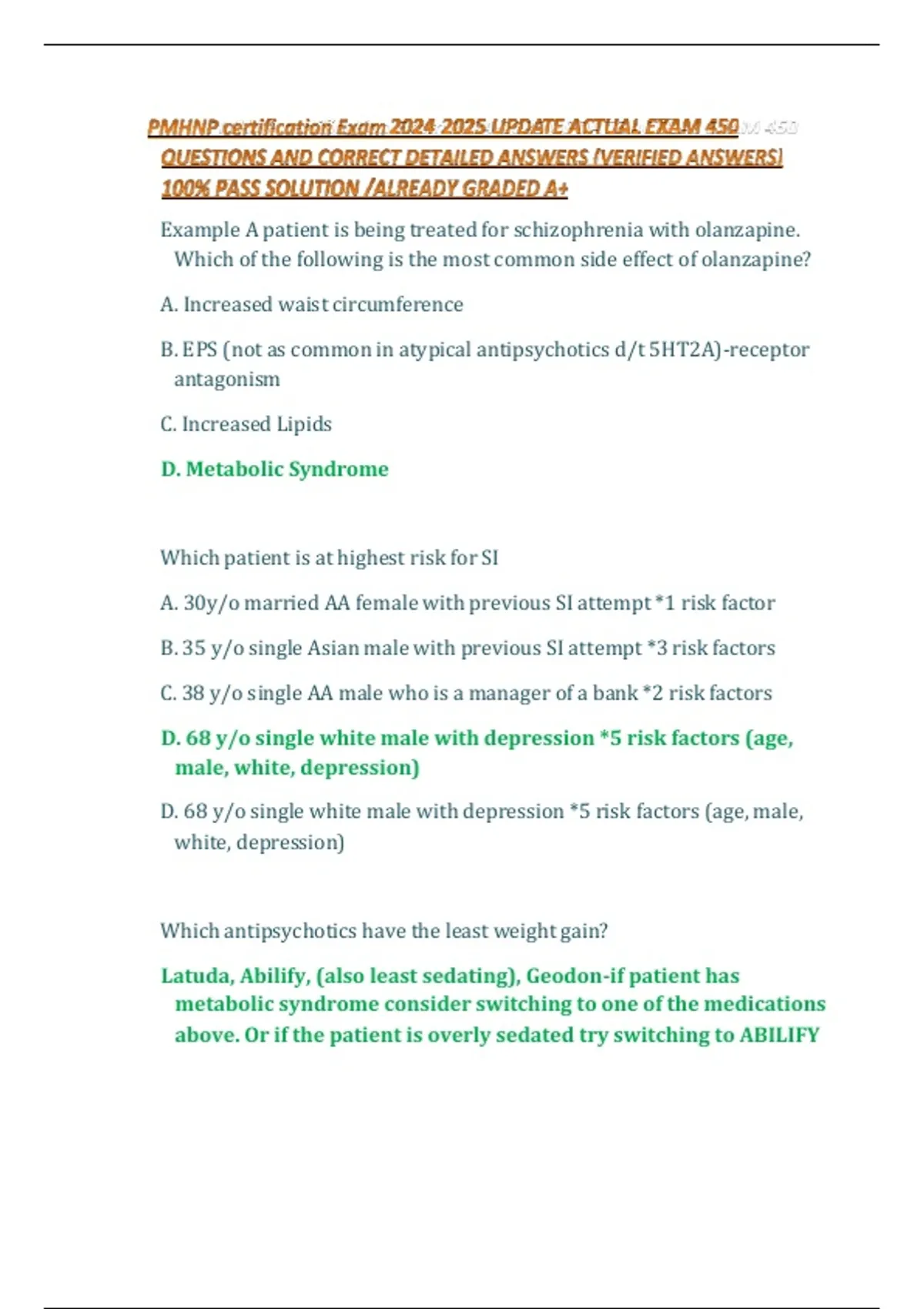 Example A patient is being treated for schizophrenia with olanzapine.