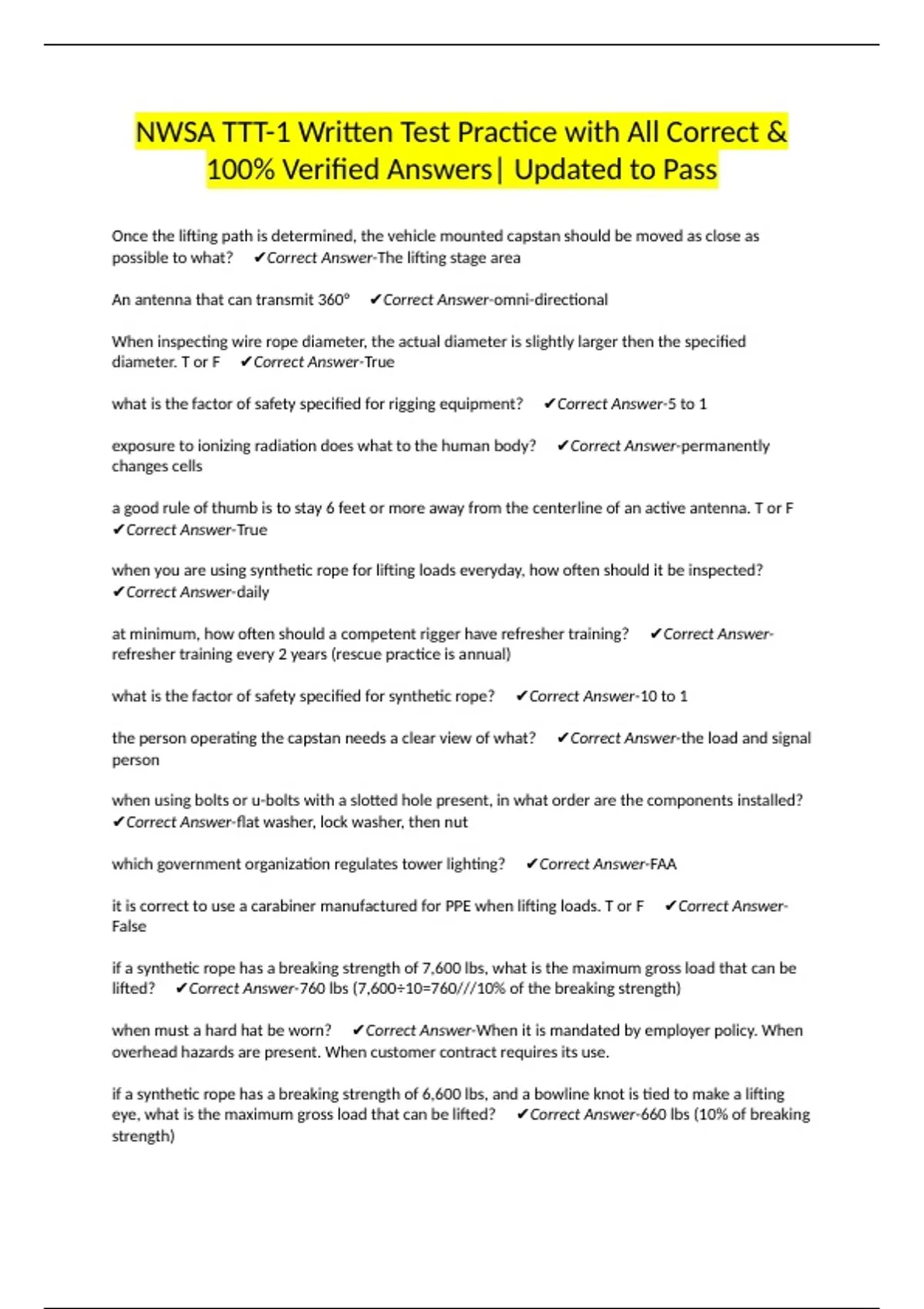 what is the factor of safety specified for synthetic rope? ✔Correct Answer-10 to 1