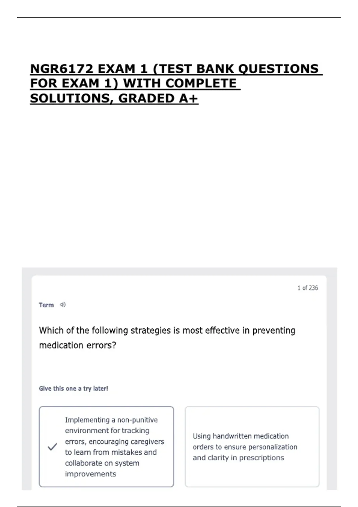 NGR6172 EXAM 1 (TEST BANK QUESTIONS FOR EXAM 1) WITH COMPLETE SOLUTIONS, GRADED A+