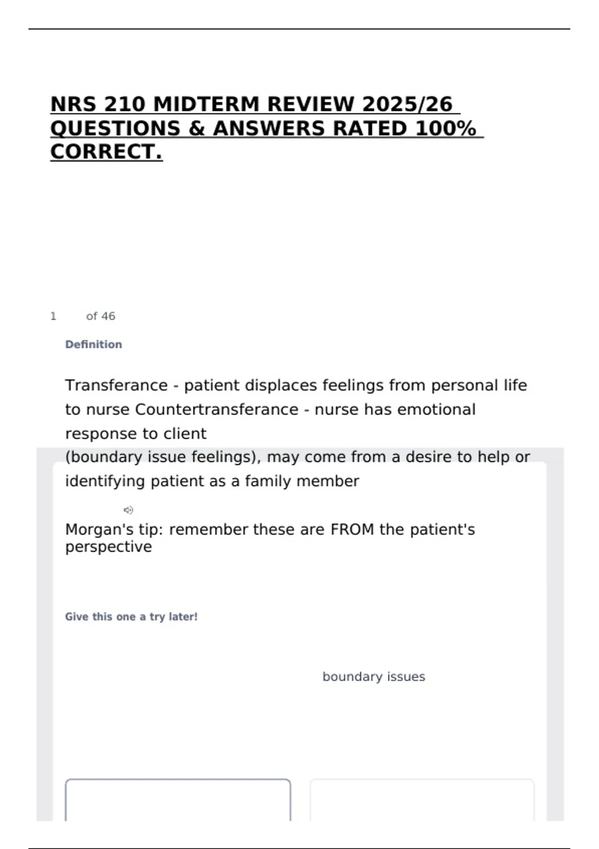 NRS 210 MIDTERM REVIEW 2025/26 QUESTIONS & ANSWERS RATED 100% CORRECT.