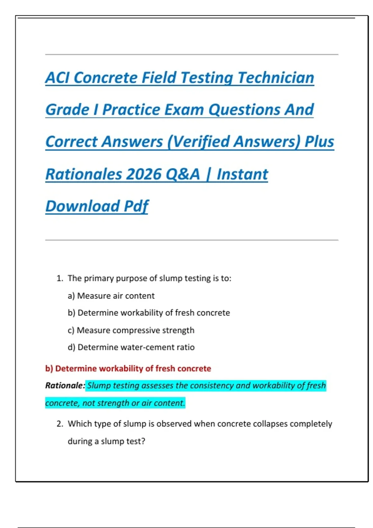 Rationale: Slump testing assesses the consistency and workability of fresh