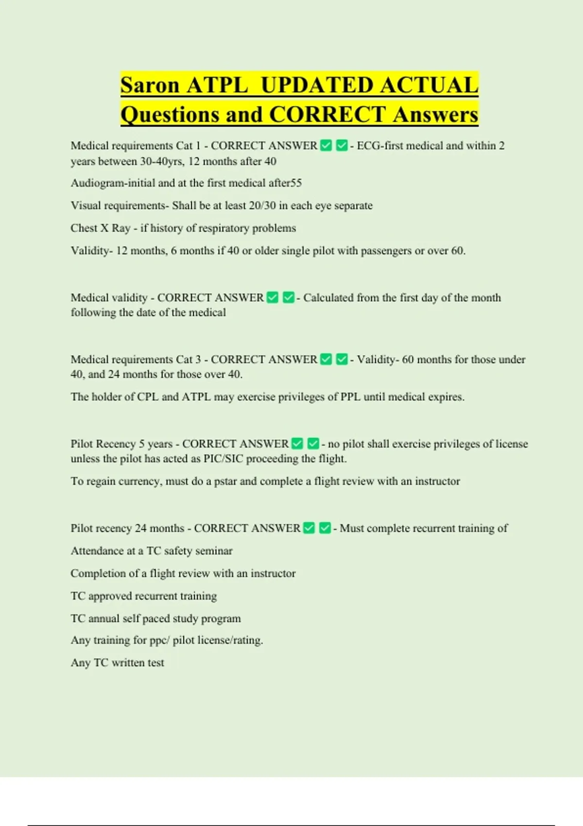 Medical requirements Cat 1 - CORRECT ANSWER - ECG-first medical and within 2