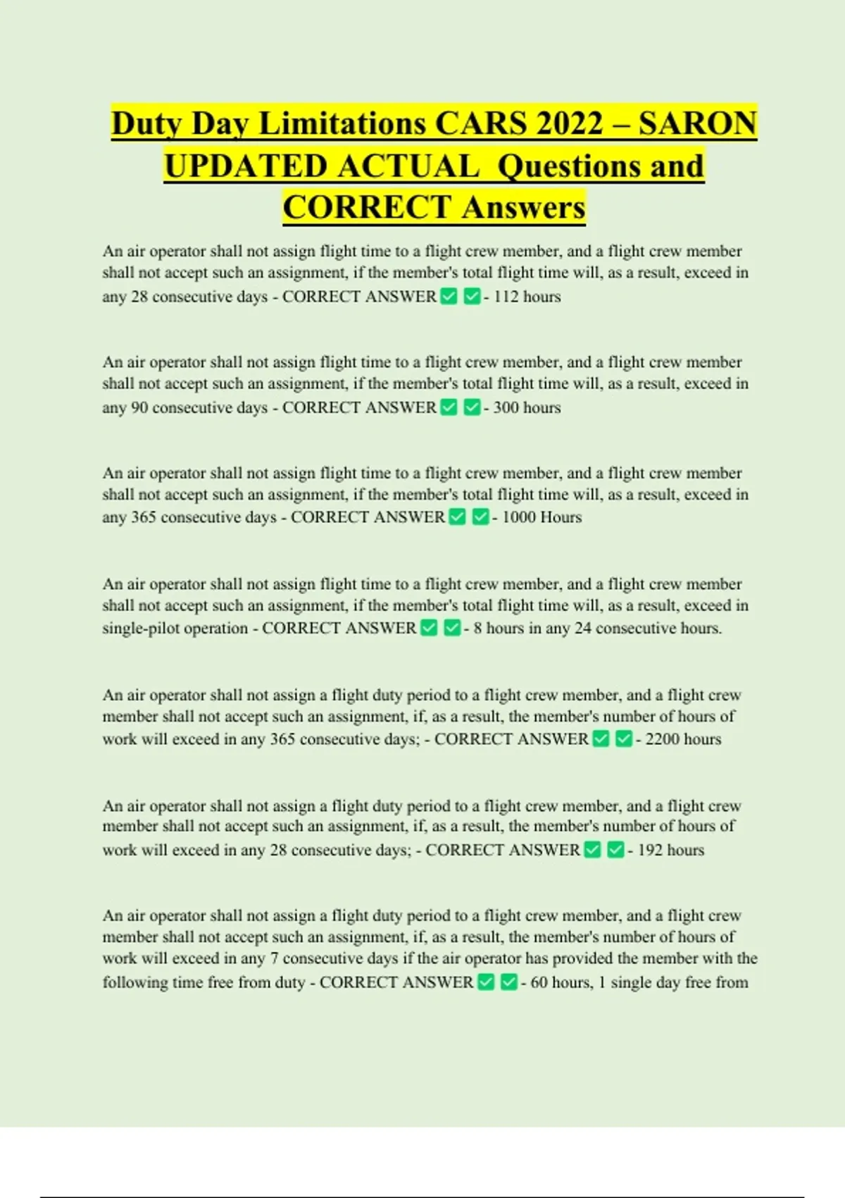 following time free from duty - CORRECT ANSWER - 60 hours, 1 single day free from
