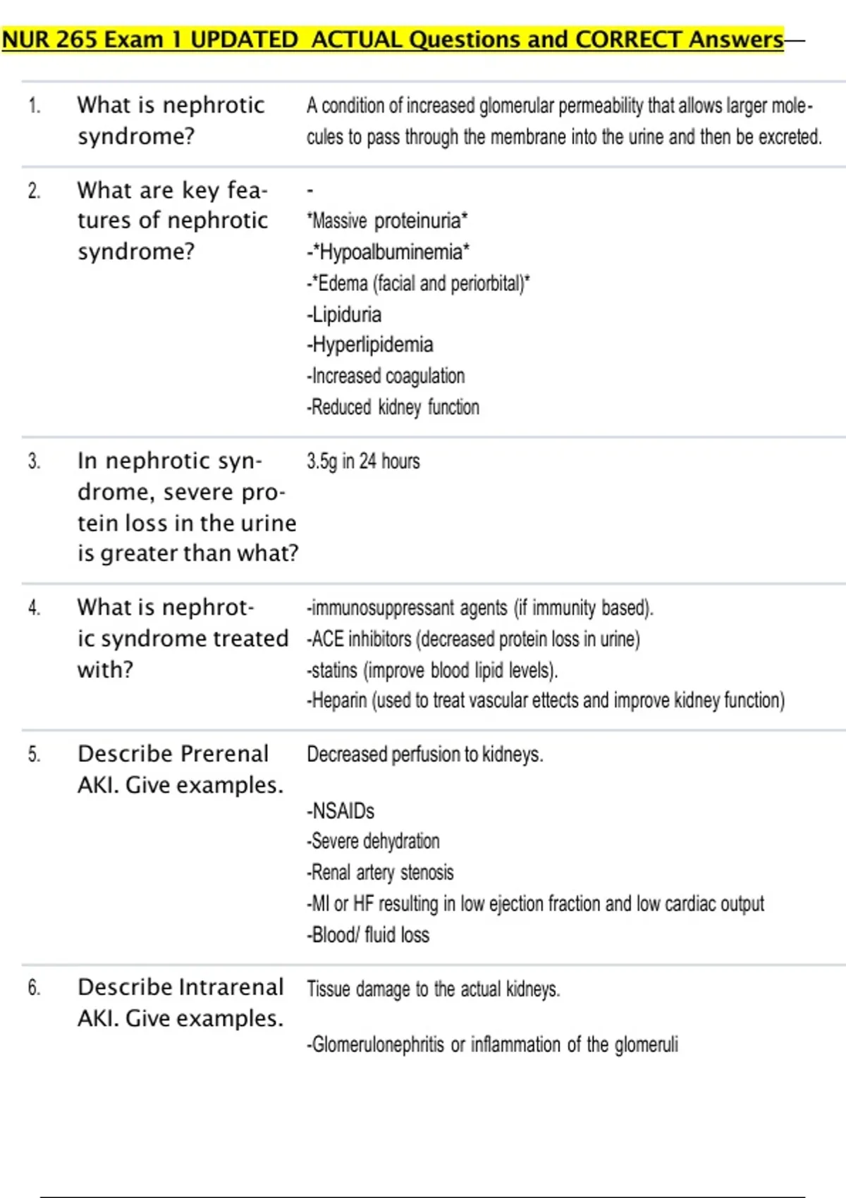1. What is nephrotic A condition of increased glomerular permeability that allows larger mole-
