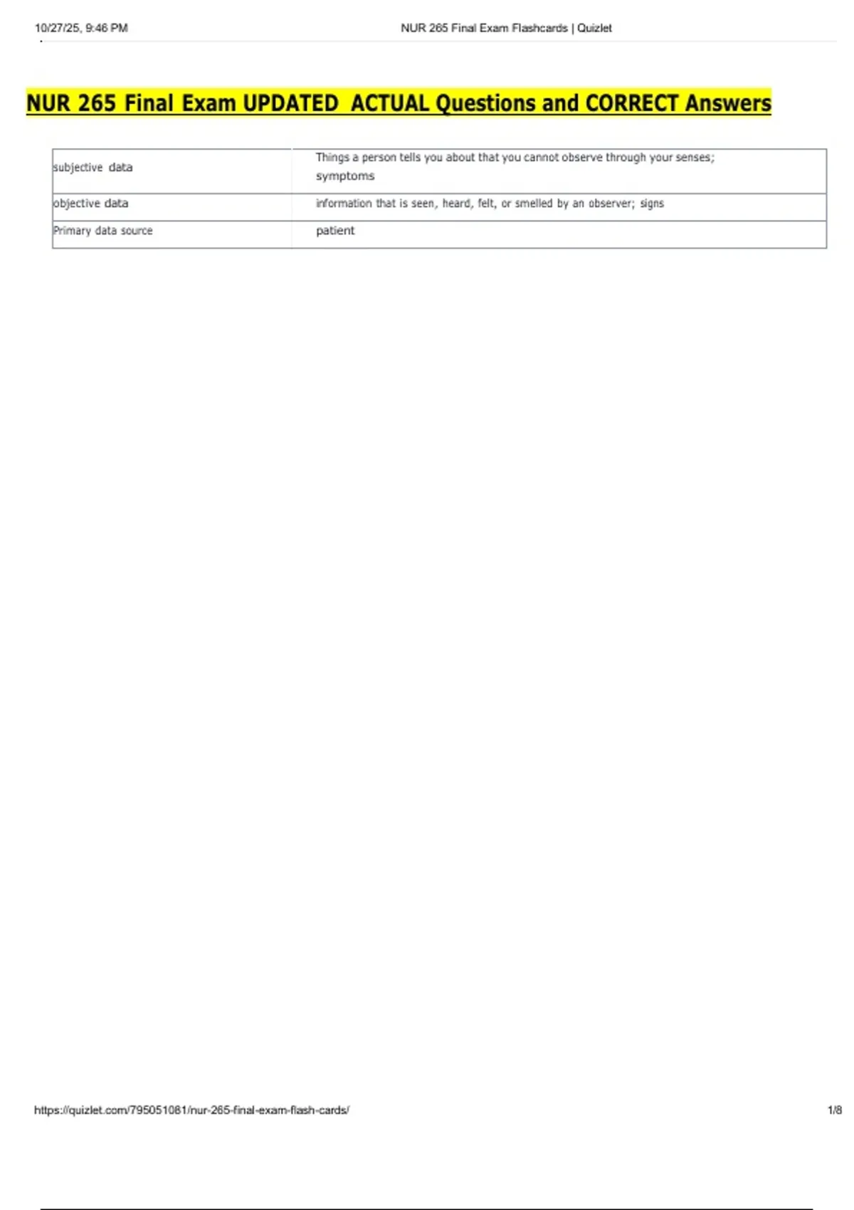 , 10/27/25, 9:46 PM NUR 265 Final Exam Flashcards | Quizlet