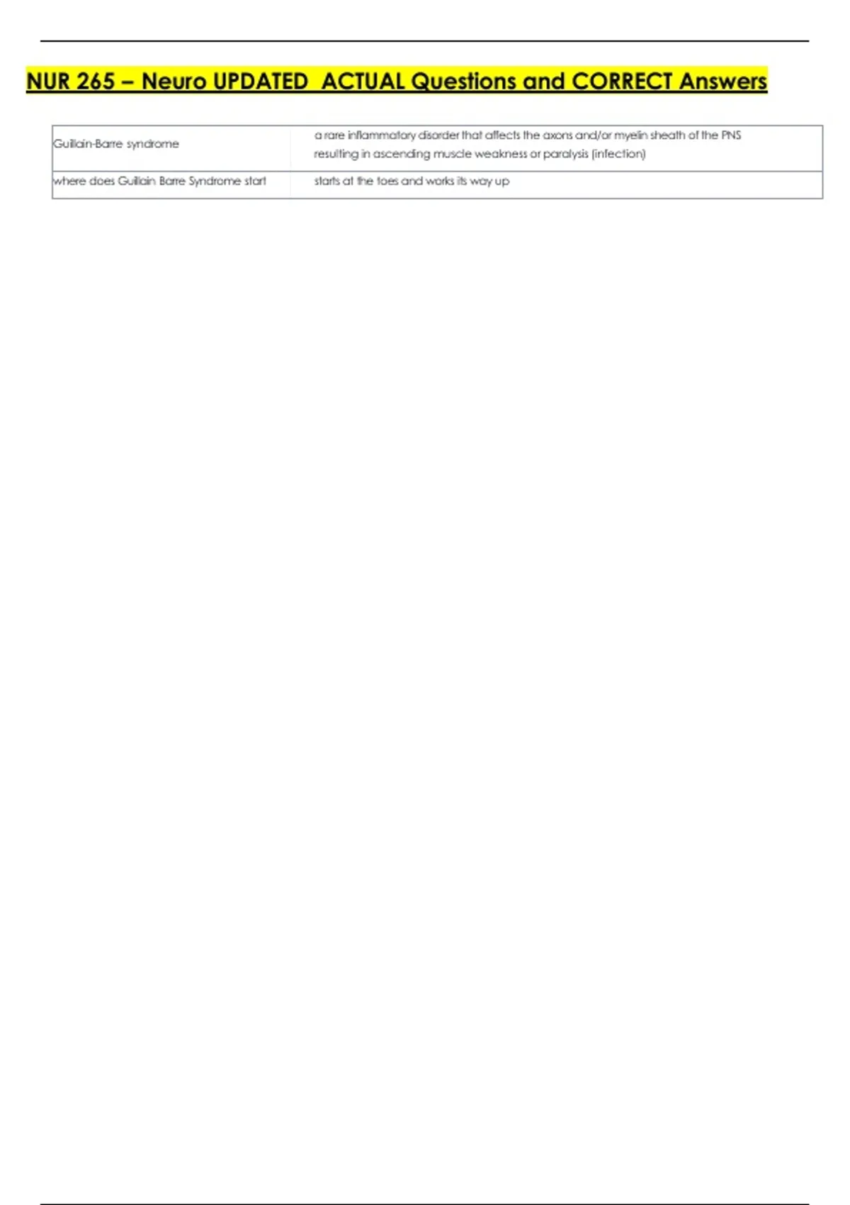 NUR 265 – Neuro UPDATED ACTUAL Questions and CORRECT Answers