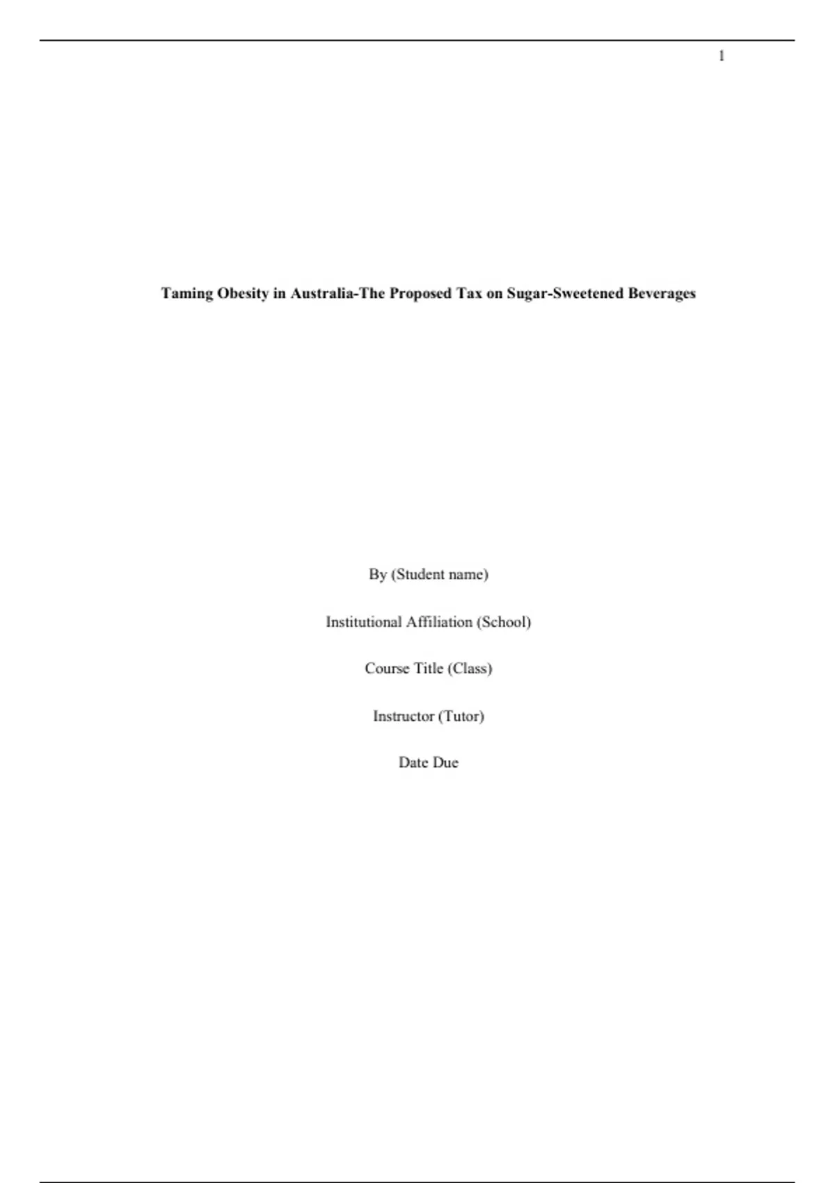 Taming Obesity in Australia-The Proposed Tax on Sugar-Sweetened Beverages