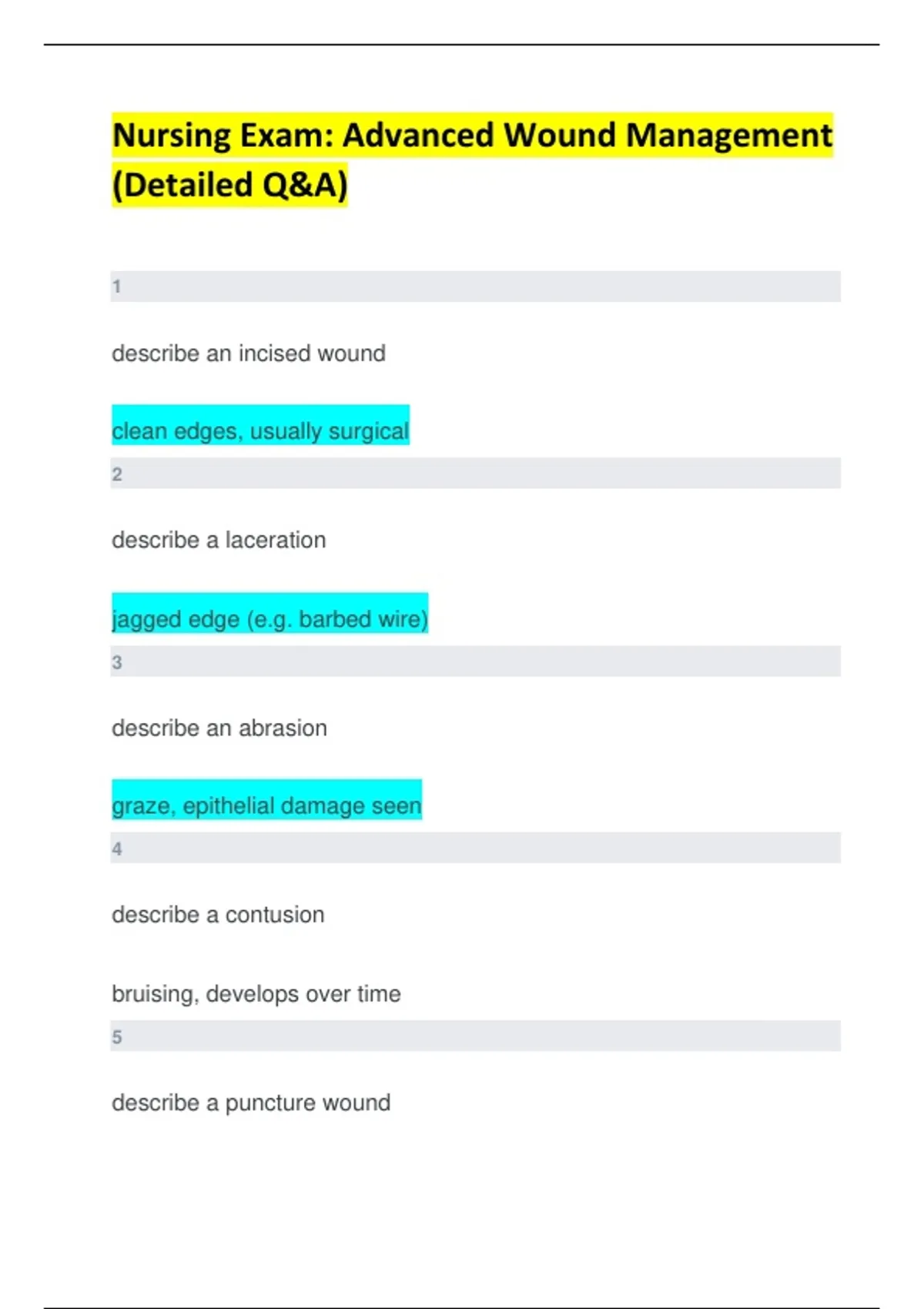 Nursing Exam: Advanced Wound Management (Detailed Q&A)