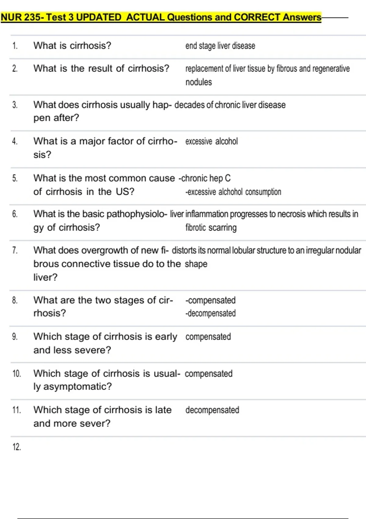 3. What does cirrhosis usually hap- decades of chronic liver disease