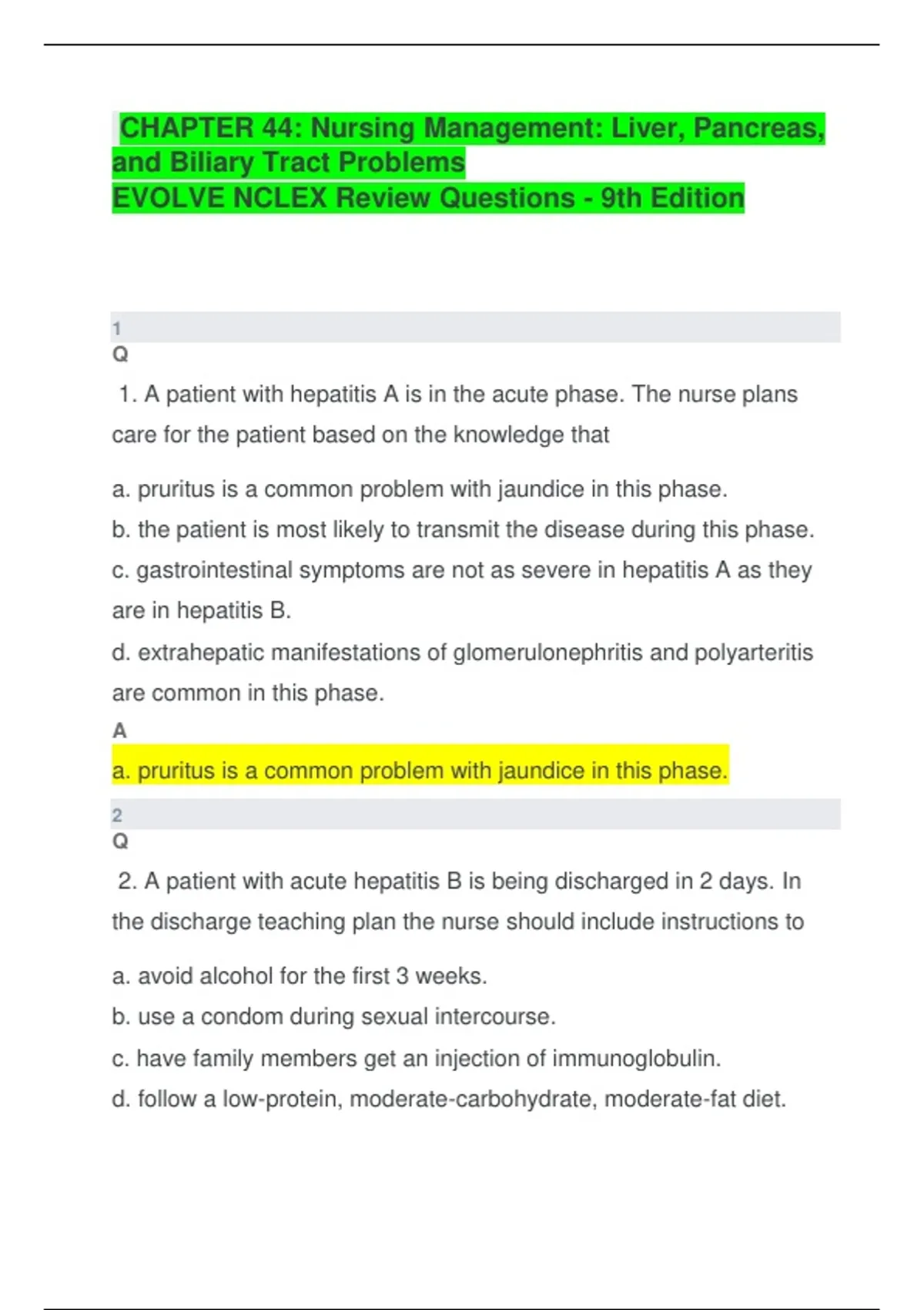 1. A patient with hepatitis A is in the acute phase. The nurse plans