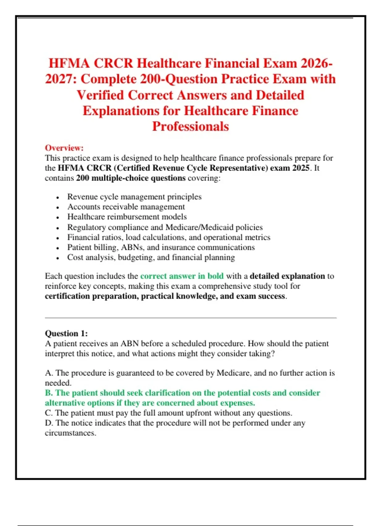 This practice exam is designed to help healthcare finance professionals prepare for