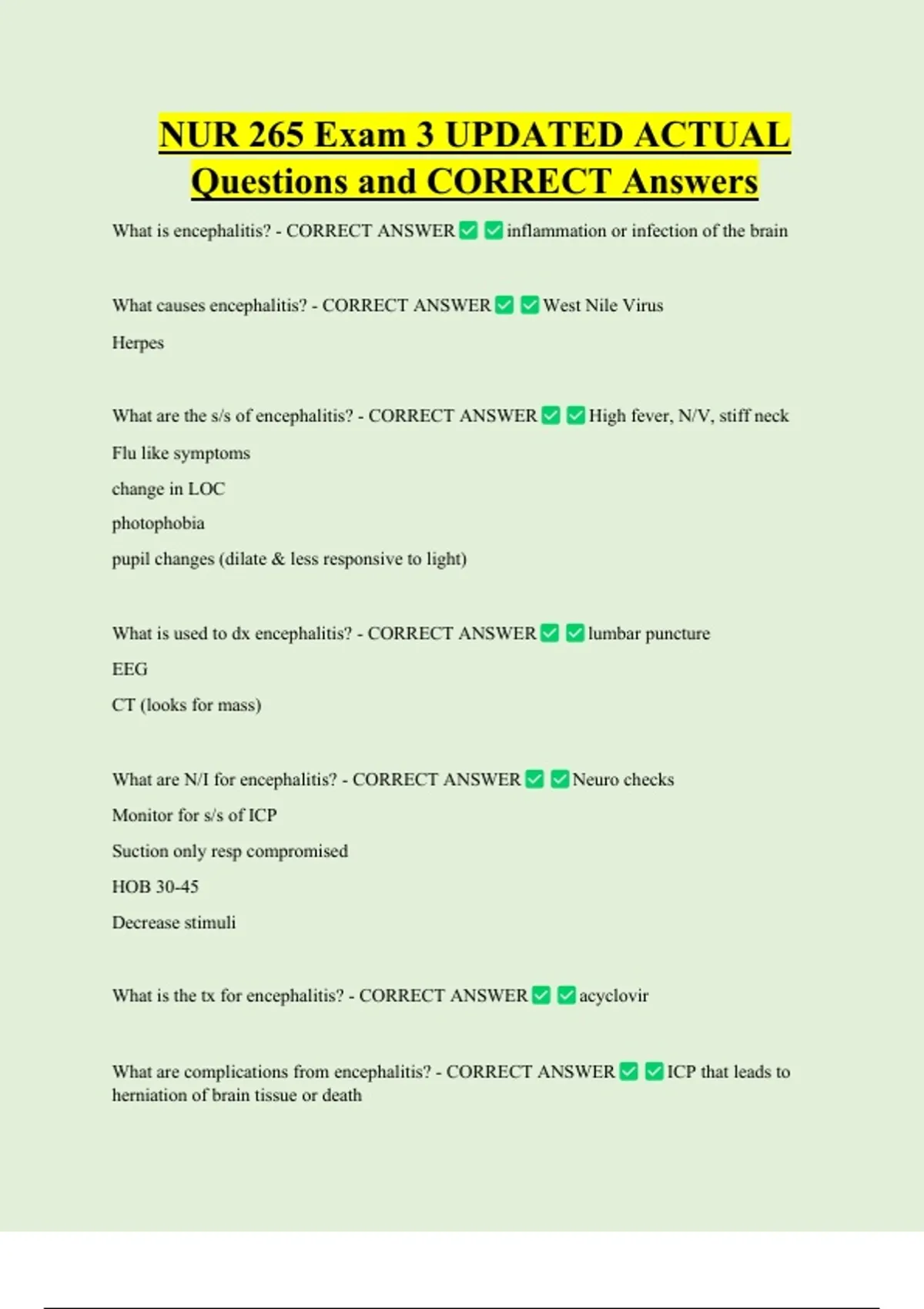 What is the tx for encephalitis? - CORRECT ANSWER acyclovir