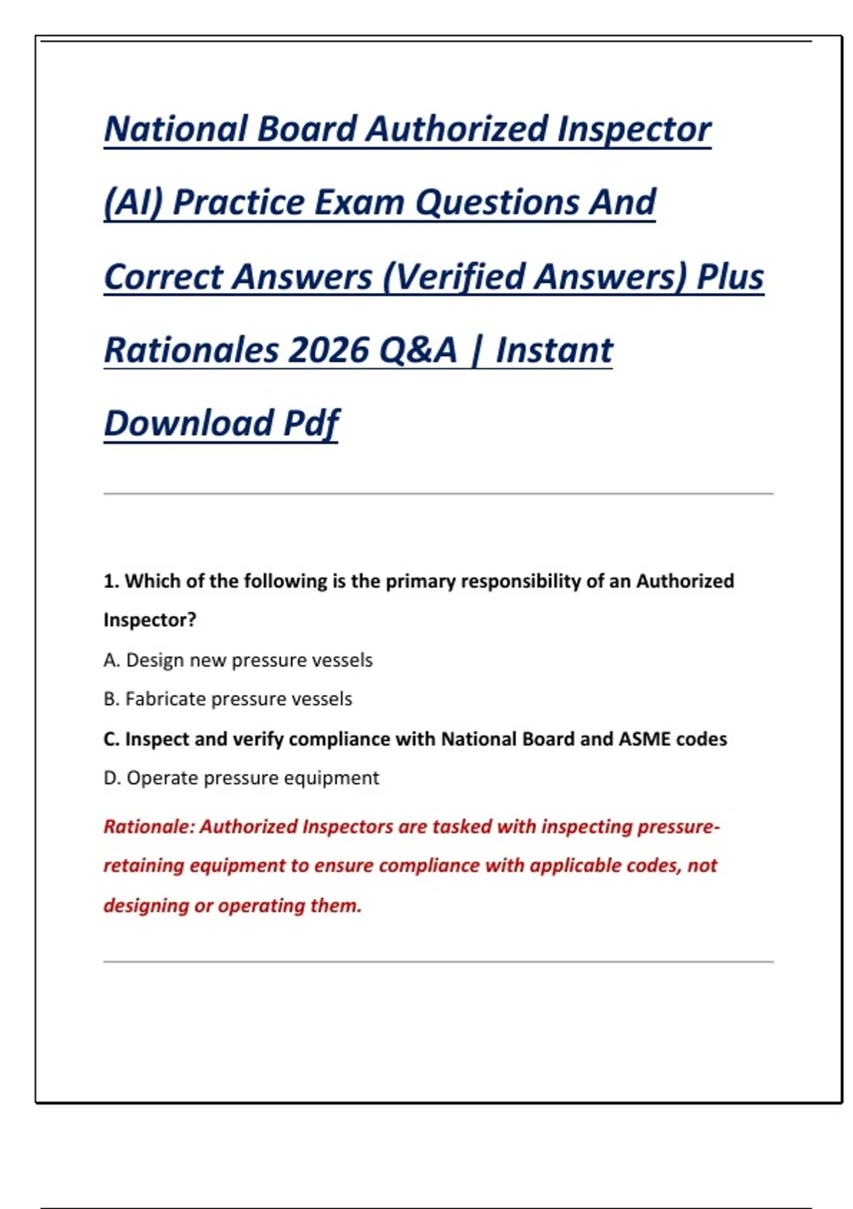 Rationale: Authorized Inspectors are tasked with inspecting pressure-