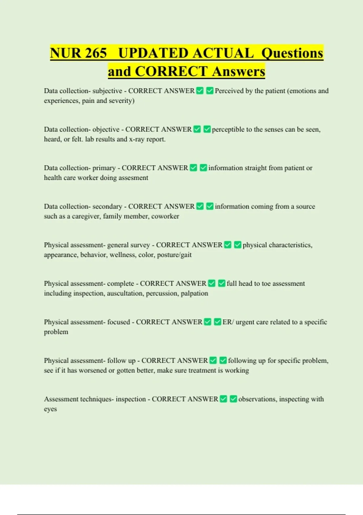 Physical assessment- complete - CORRECT ANSWER full head to toe assessment