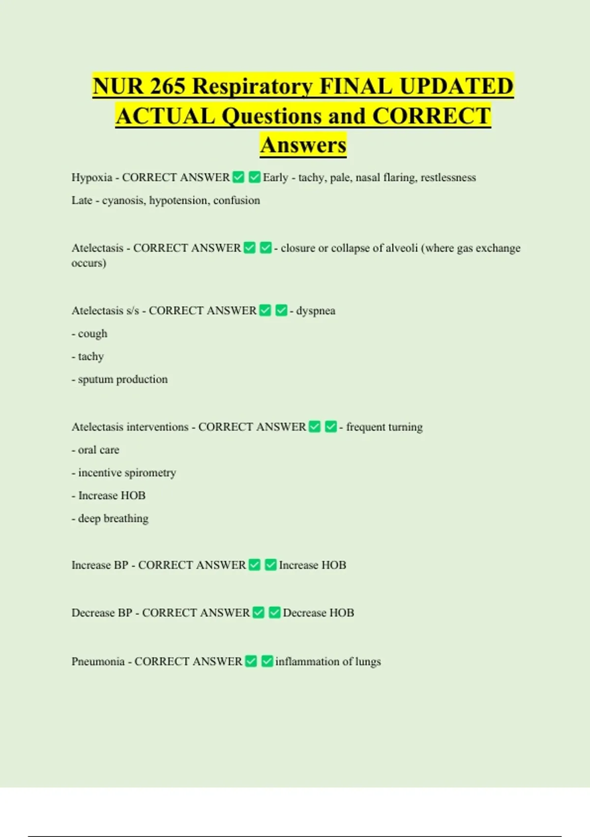 Pneumonia: what to report - CORRECT ANSWER - low BP because could be septic