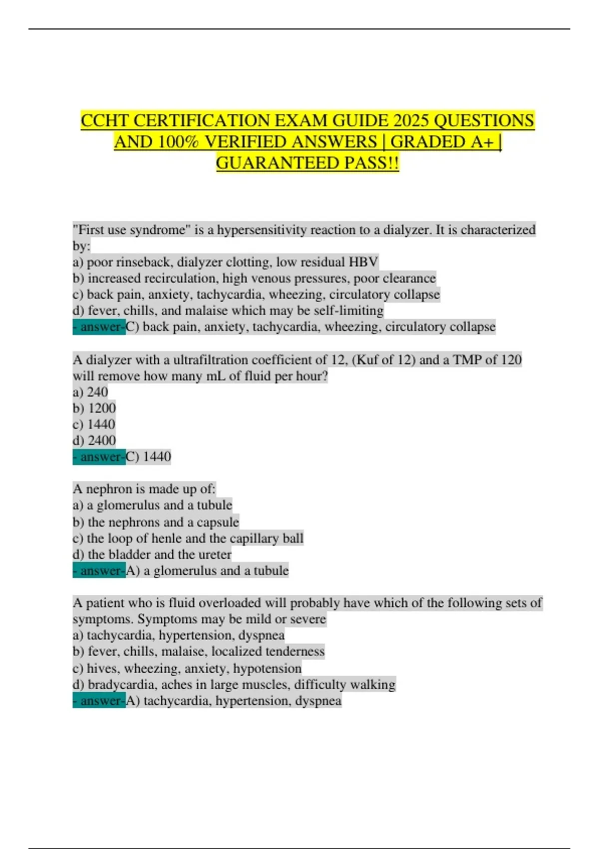 CCHT Certification Exam Guide 2025: 200+ Practice Questions, Dialysis Calculations, AAMI Standards, and Patient Safety Protocols