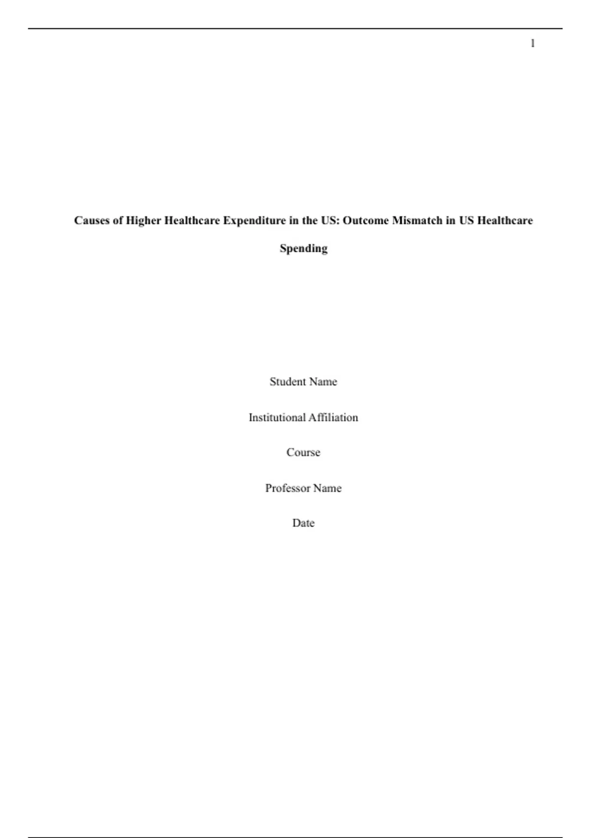 Causes of Higher Healthcare Expenditure in the US: Outcome Mismatch in US Healthcare