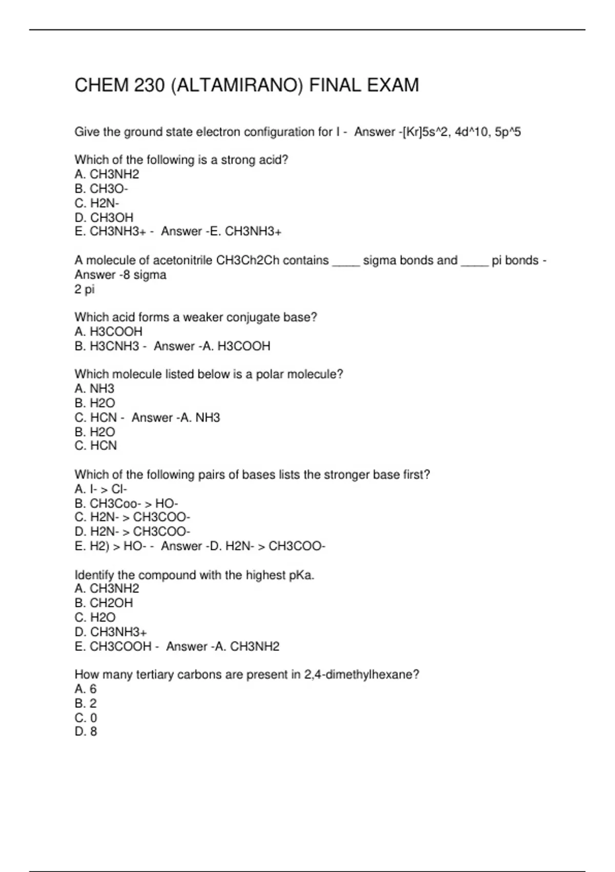 CHEM 230 (ALTAMIRANO) FINAL EXAM