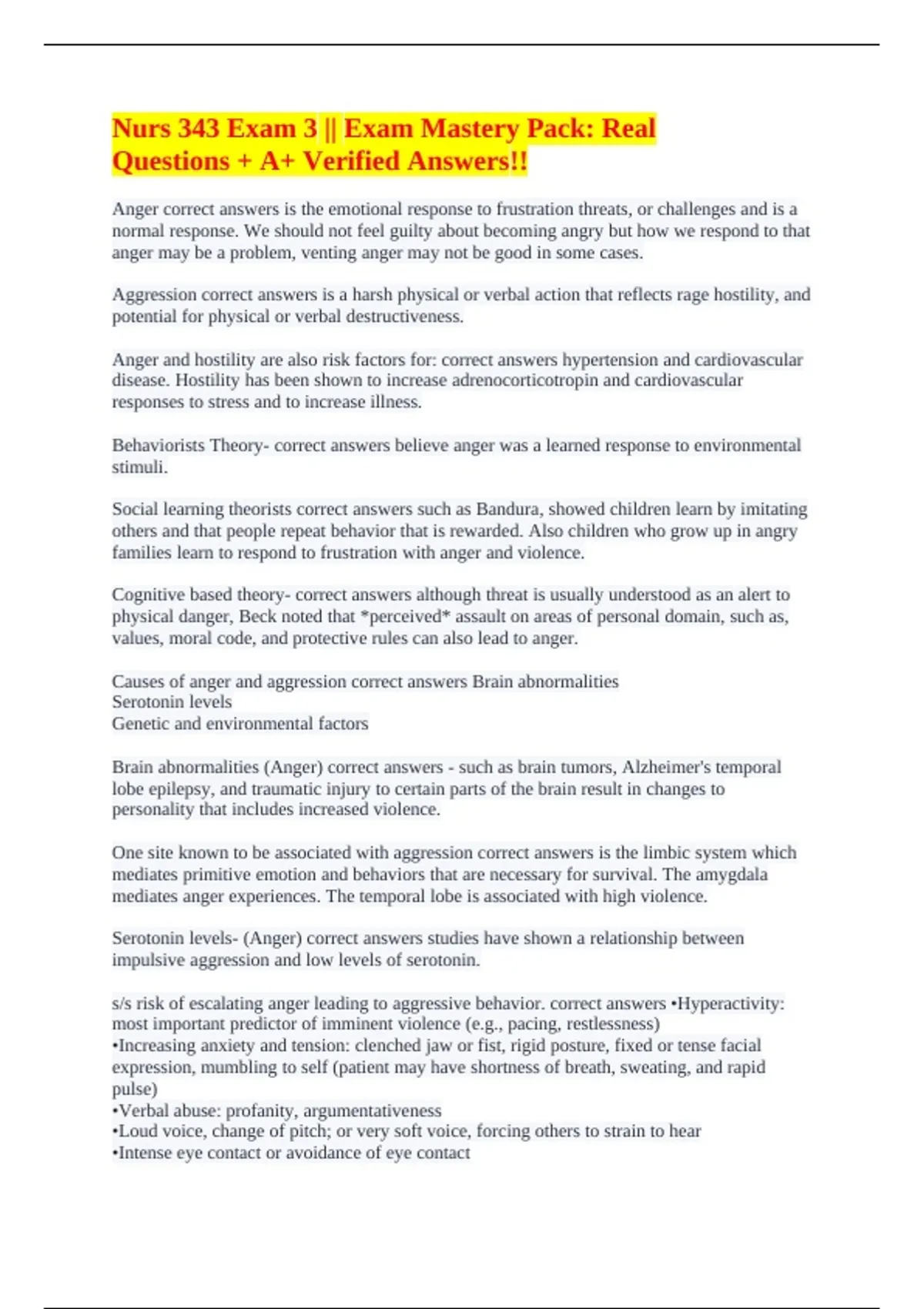 Nurs 343 Exam 3 || Exam Mastery Pack: Real