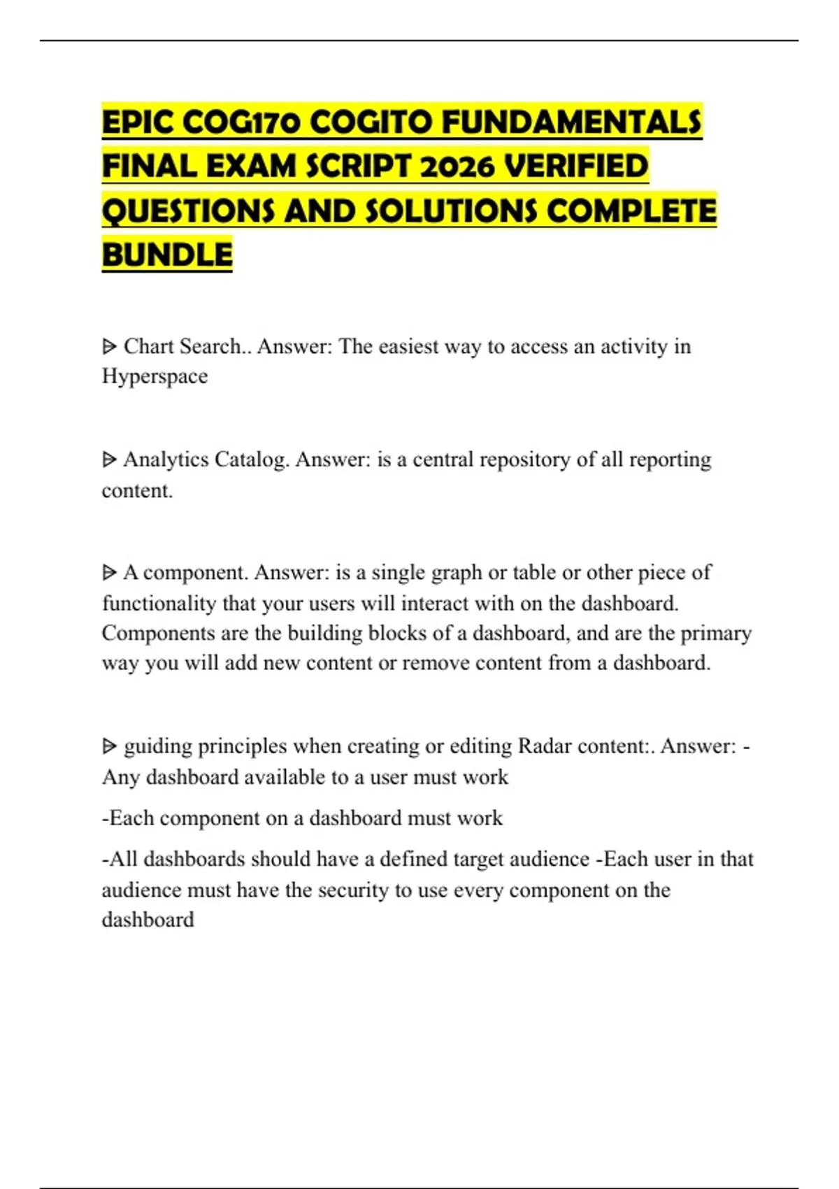 EPIC COG170 COGITO FUNDAMENTALS FINAL EXAM SCRIPT 2026 VERIFIED QUESTIONS AND SOLUTIONS COMPLETE BUNDLE