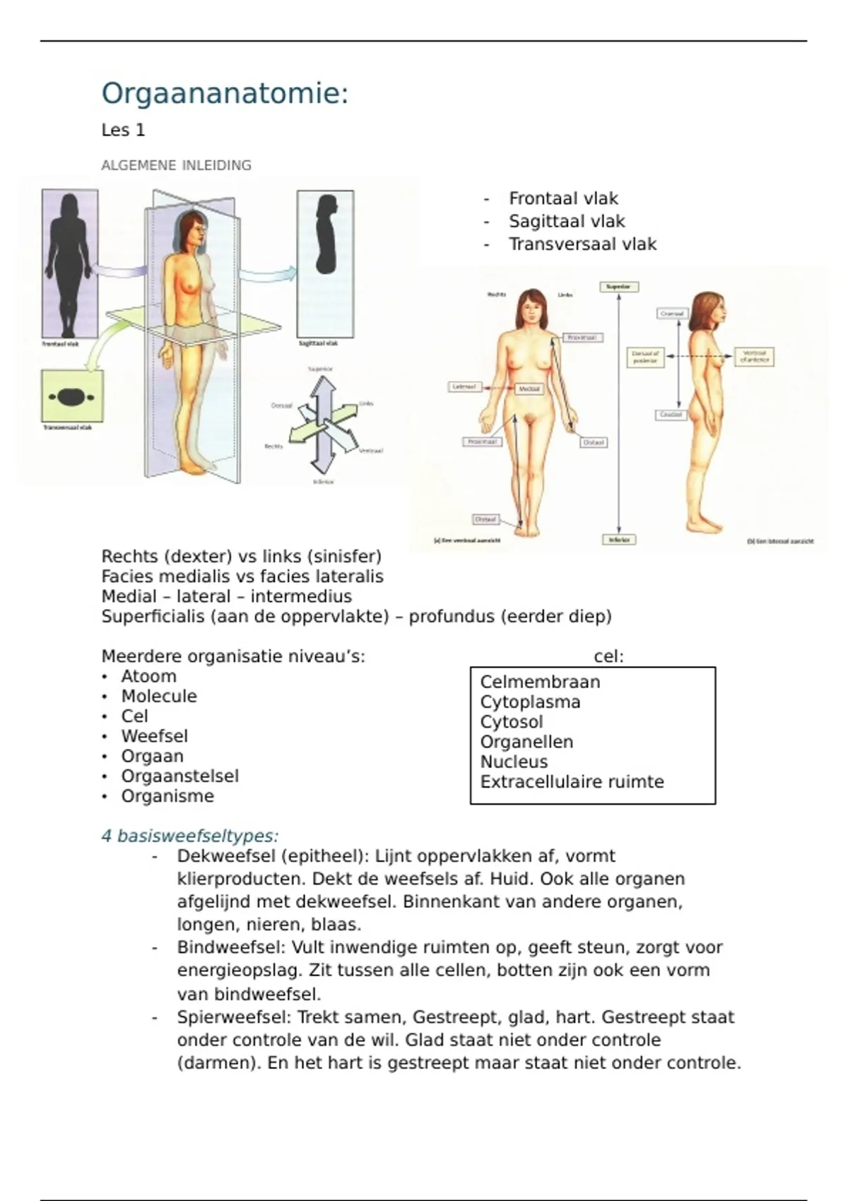 - Dekweefsel (epitheel): Lijnt oppervlakken af, vormt