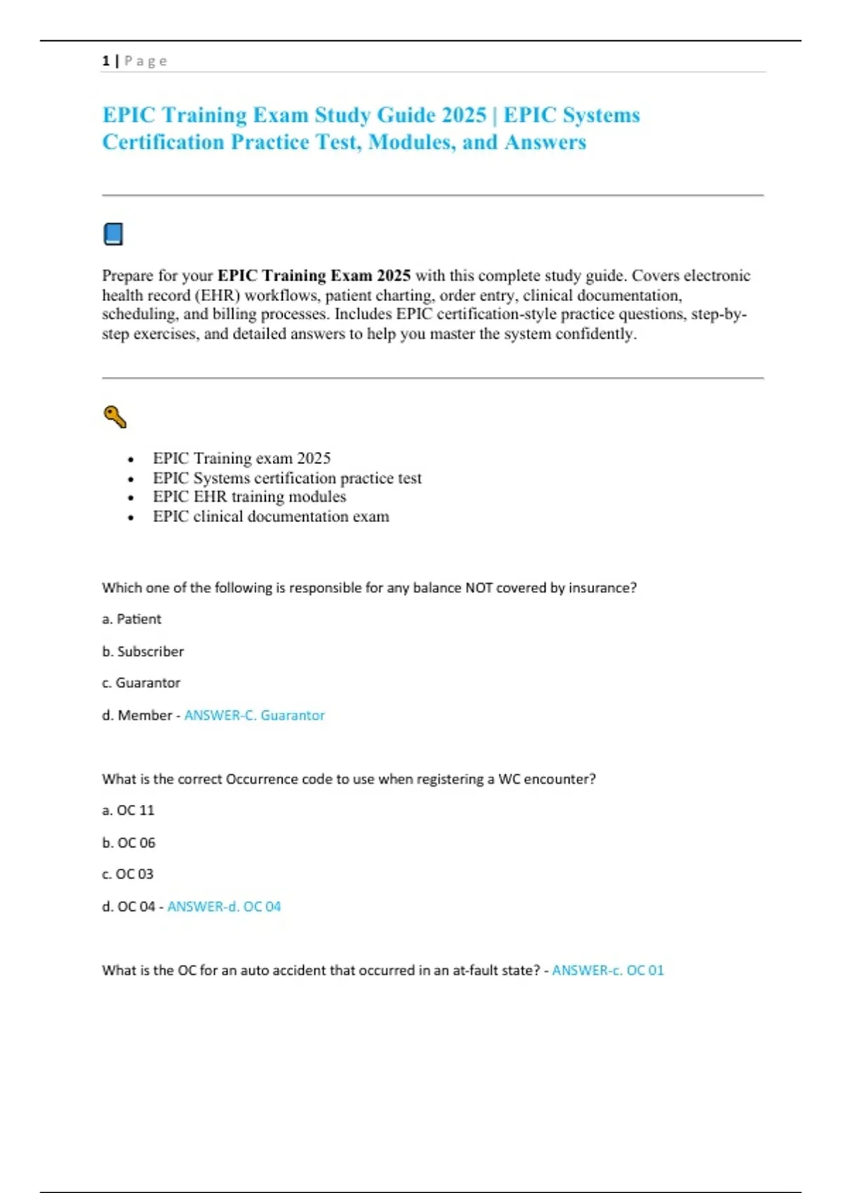 • EPIC Training exam 2025