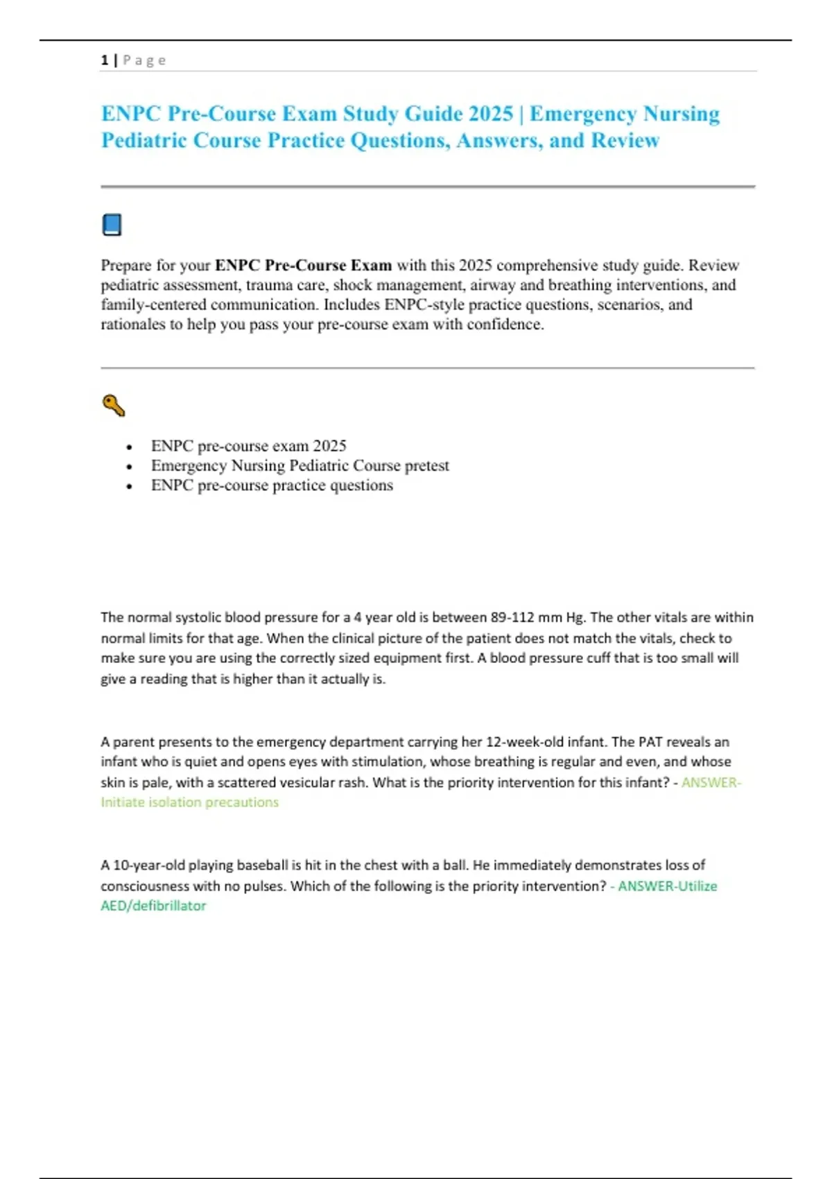 ENPC Pre-Course Exam Study Guide 2025 Emergency Nursing Pediatric Course Practice Questions, Answers, and Review