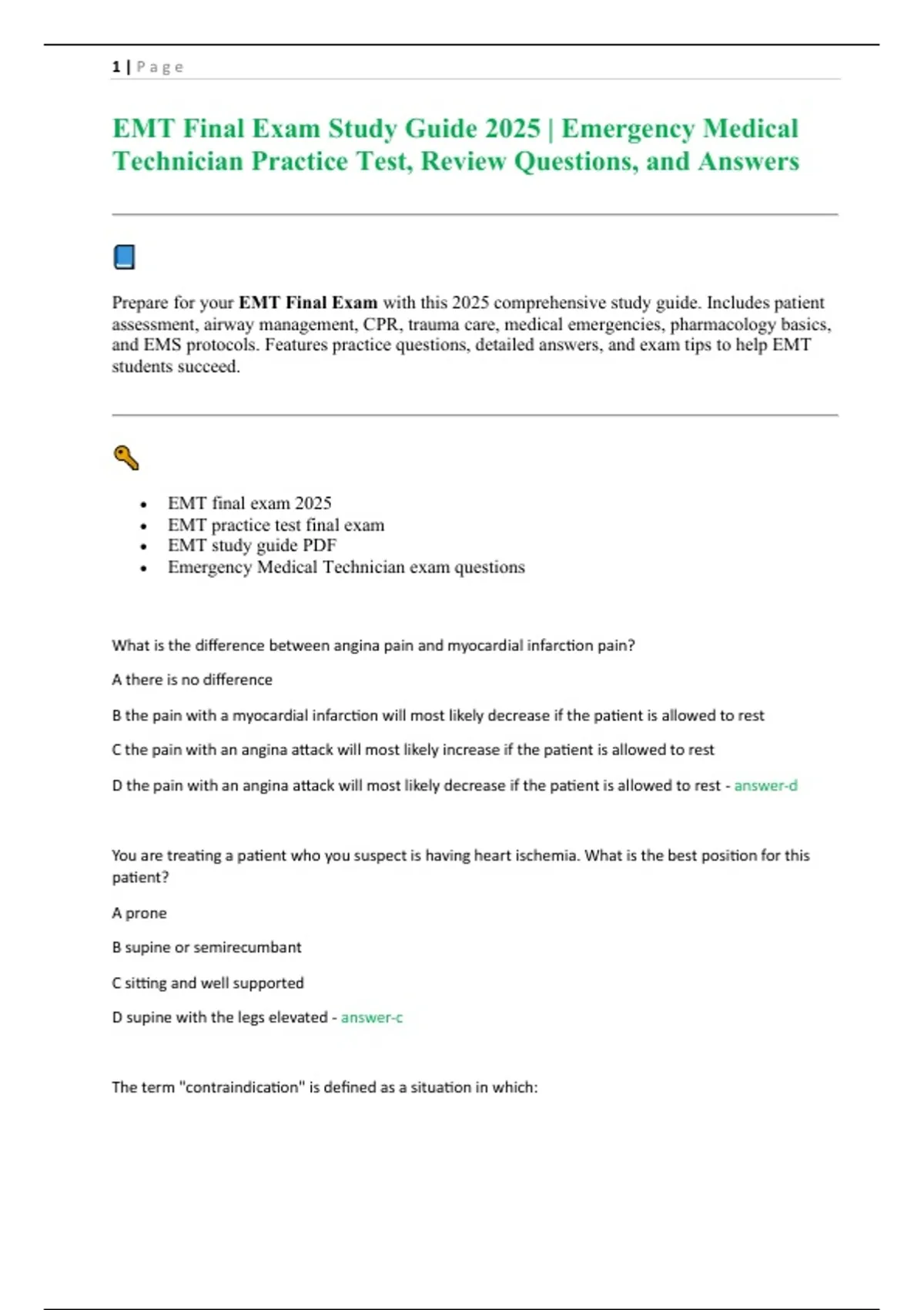 EMT Final Exam Study Guide 2025 | Emergency Medical