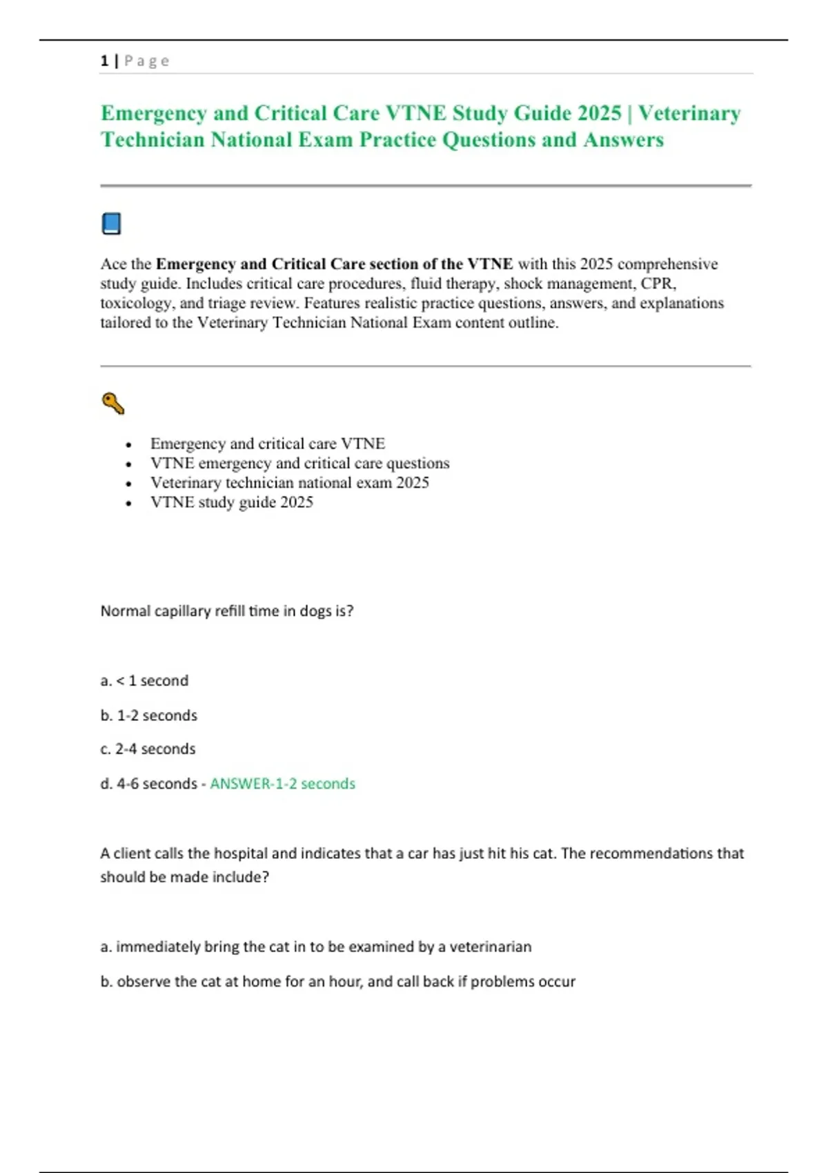 • VTNE emergency and critical care questions