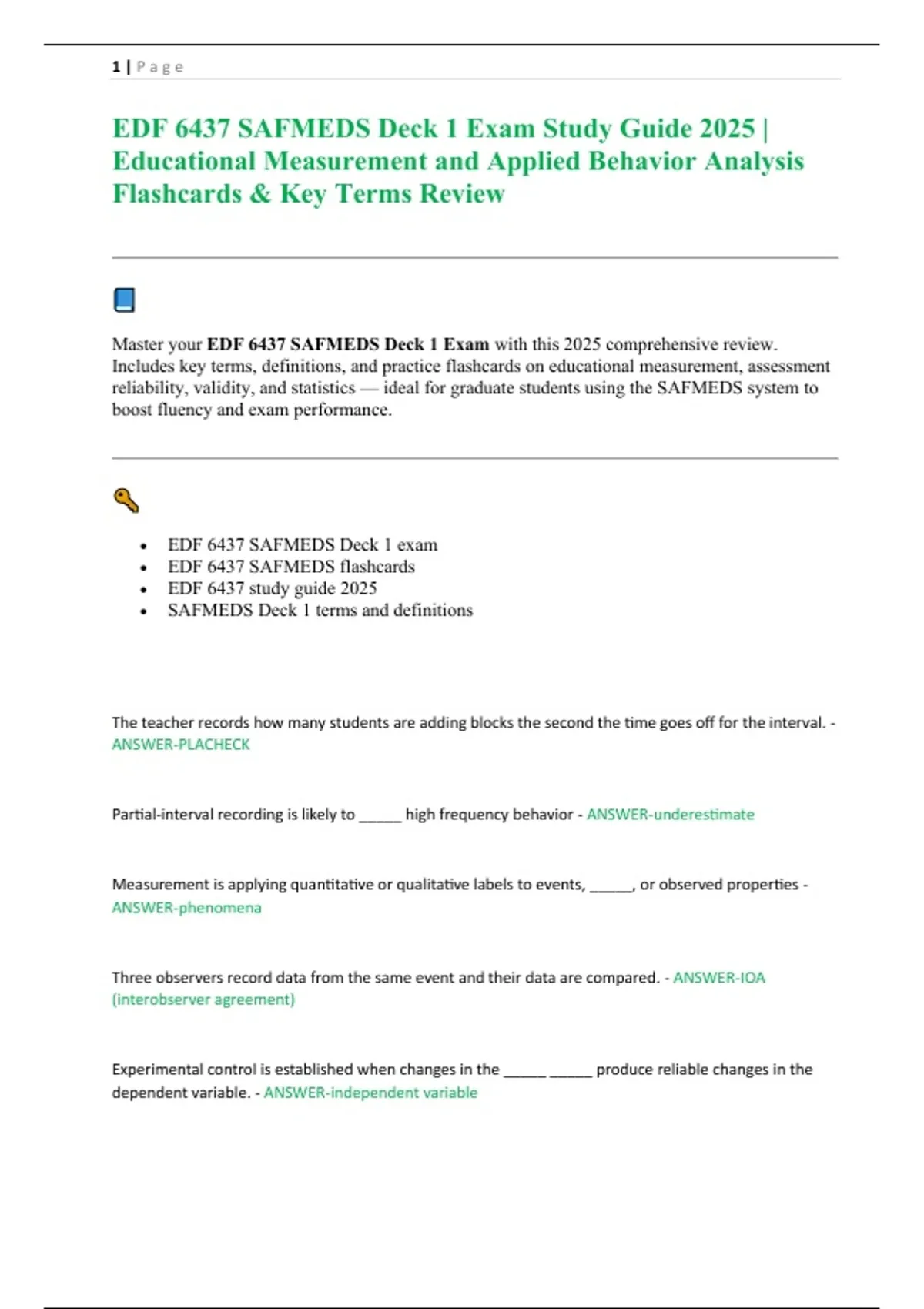 Master your EDF 6437 SAFMEDS Deck 1 Exam with this 2025 comprehensive review.