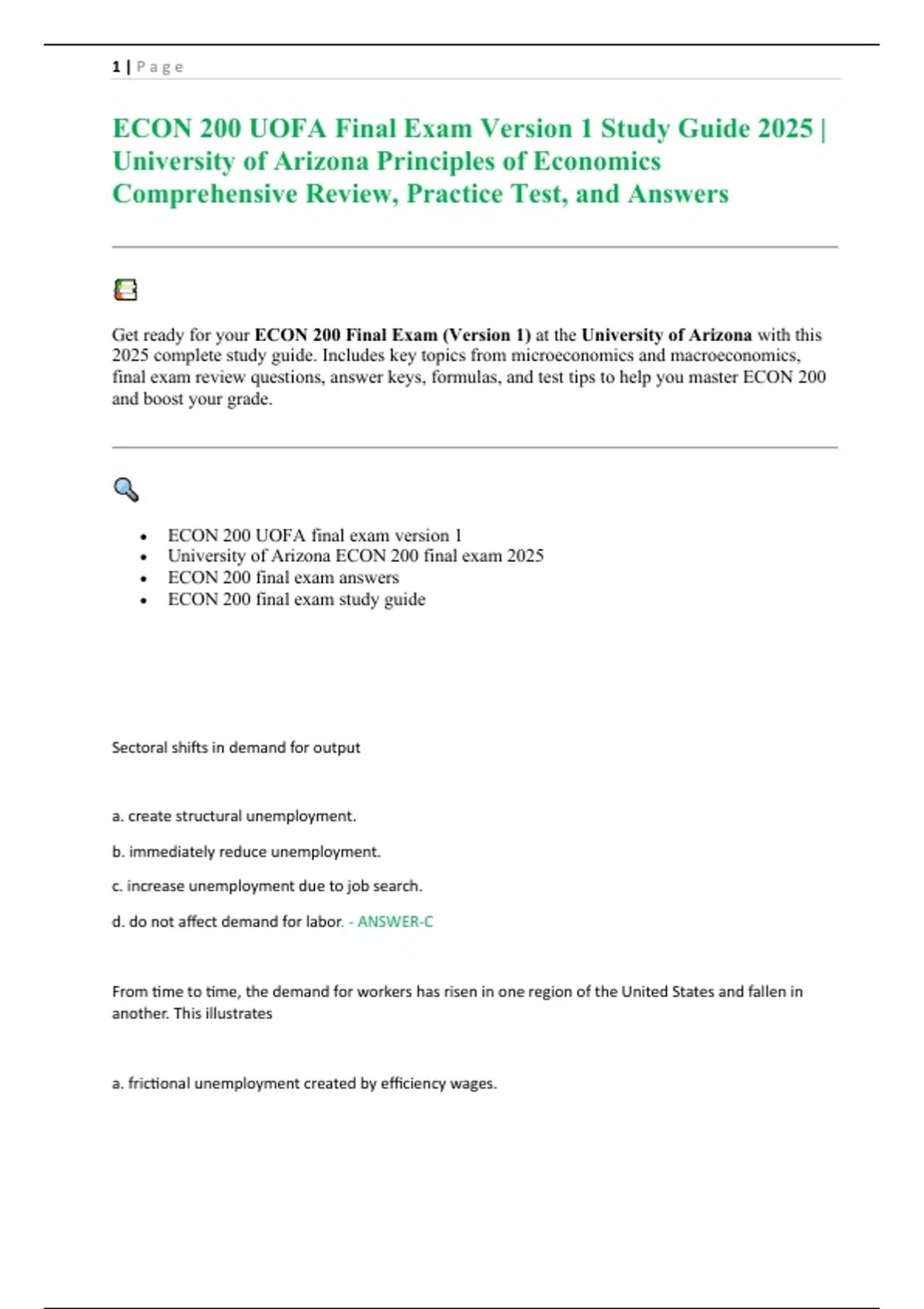 ECON 200 UOFA Final Exam Version 1 Study Guide 2025 |