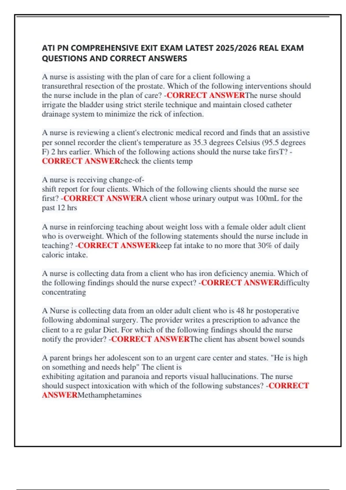 ATI PN COMPREHENSIVE EXIT EXAM LATEST 2025/2026 REAL EXAM