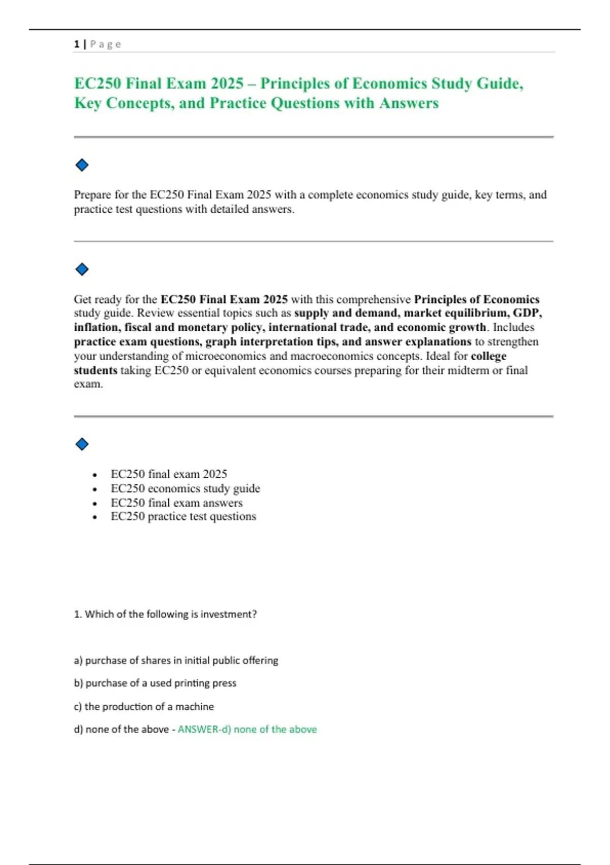 Get ready for the EC250 Final Exam 2025 with this comprehensive Principles of Economics