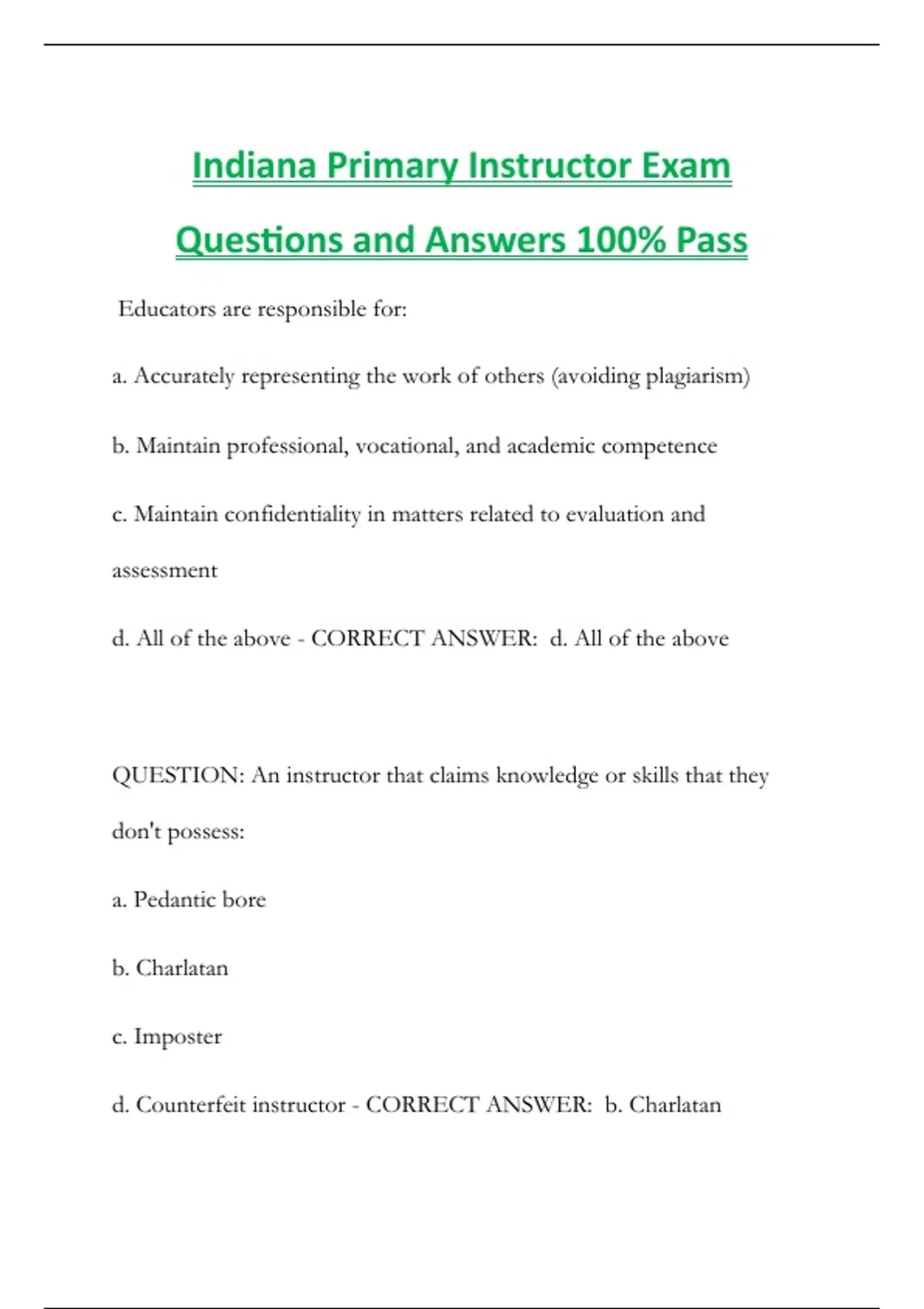 d. Counterfeit instructor - CORRECT ANSWER: b. Charlatan