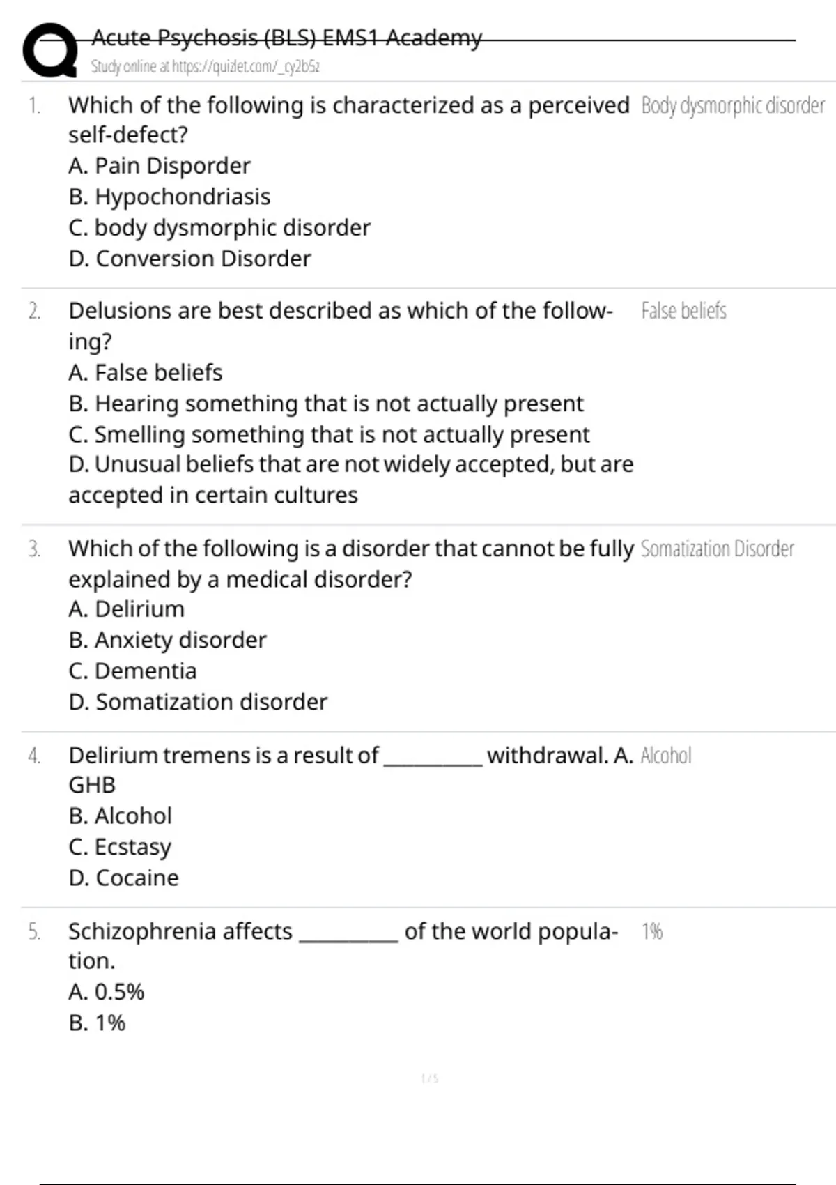 4. Delirium tremens is a result of __________ withdrawal. A. Alcohol