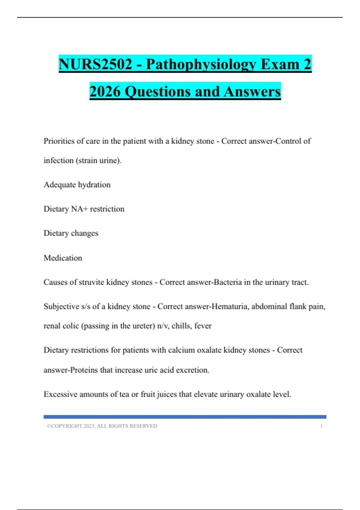 NURS2502 - Pathophysiology Exam 2 2026 Questions and Answers