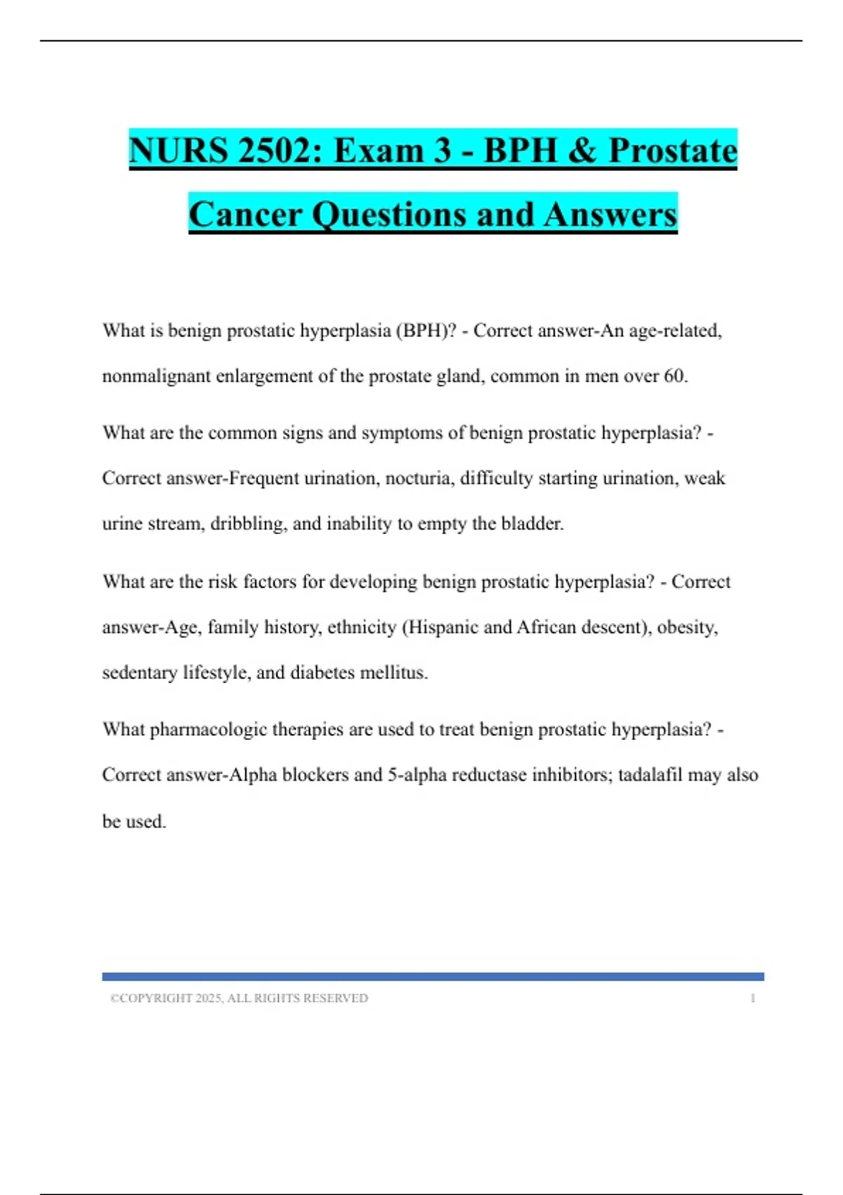 NURS 2502: Exam 3 - BPH & Prostate Cancer Questions and Answers