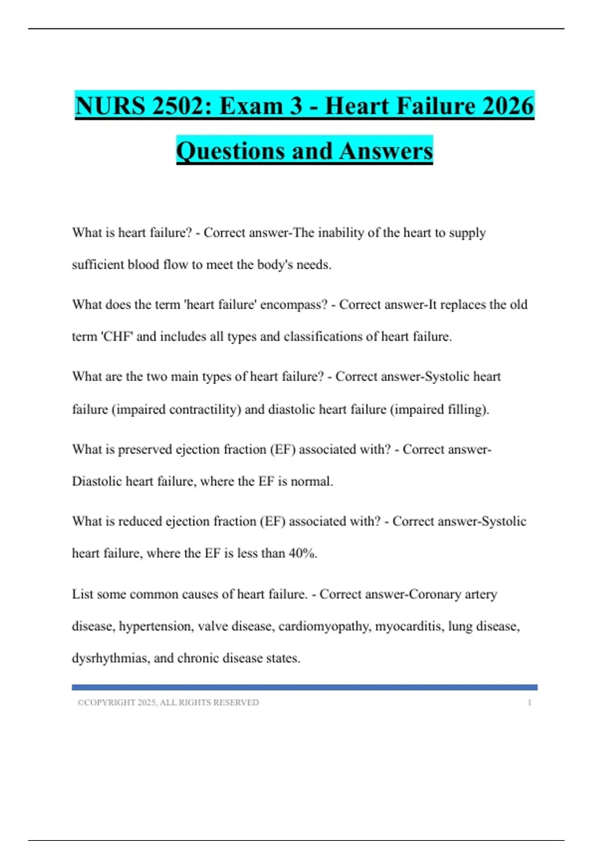 NURS 2502: Exam 3 - Heart Failure 2026