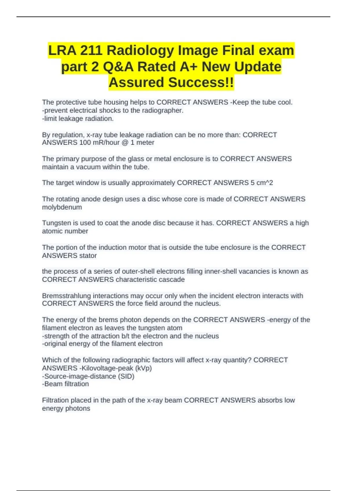 LRA 211 Radiology Image Final exam part 2 Q&A Rated A+ New Update Assured Success!!