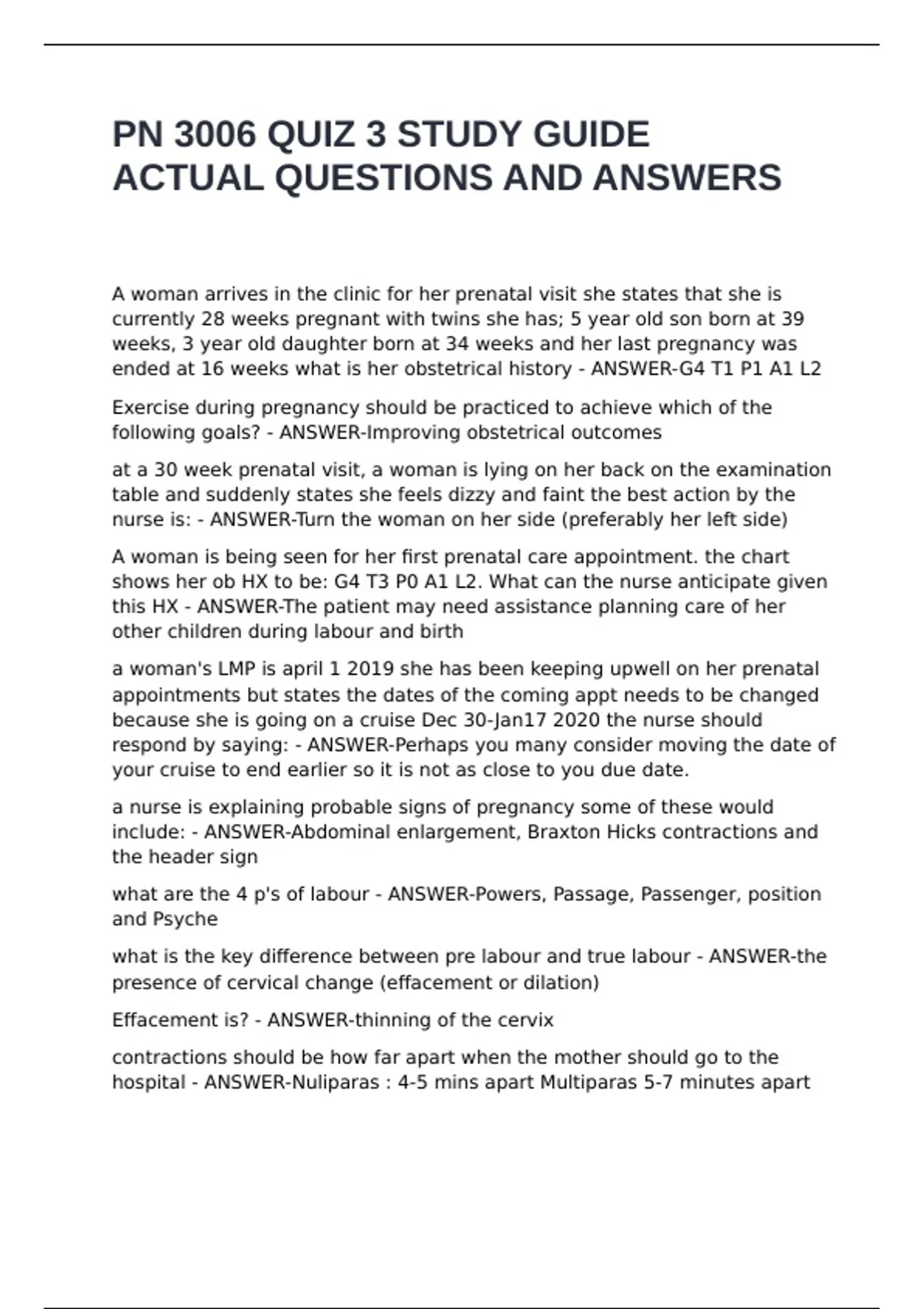 PN 3006 QUIZ 3 STUDY GUIDE ACTUAL QUESTIONS AND ANSWERS