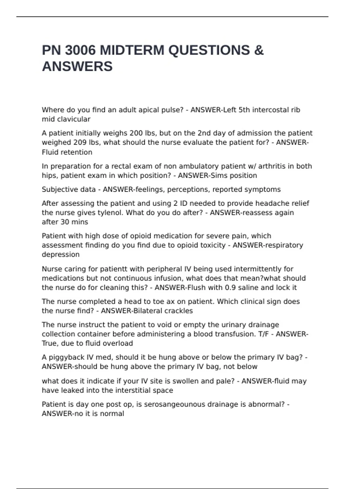 PN 3006 MIDTERM QUESTIONS & ANSWERS