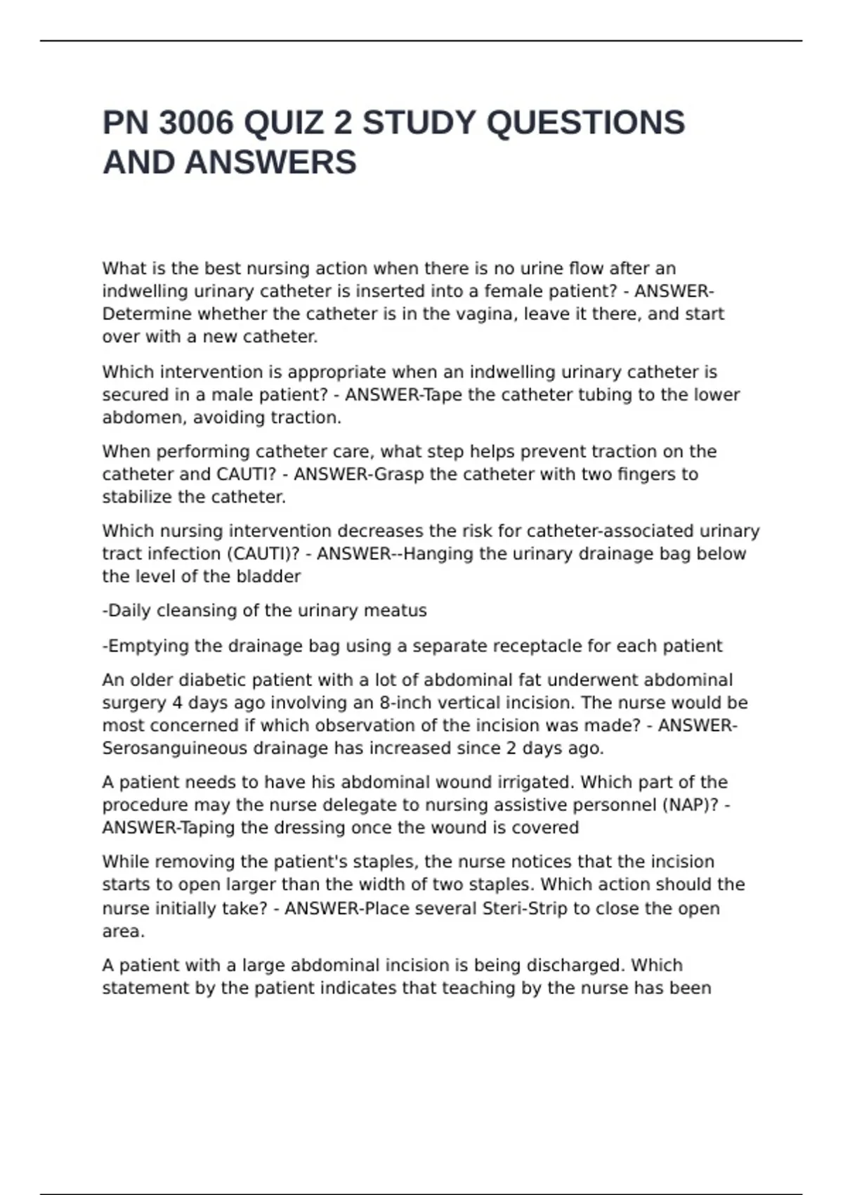 catheter and CAUTI? - ANSWER-Grasp the catheter with two fingers to