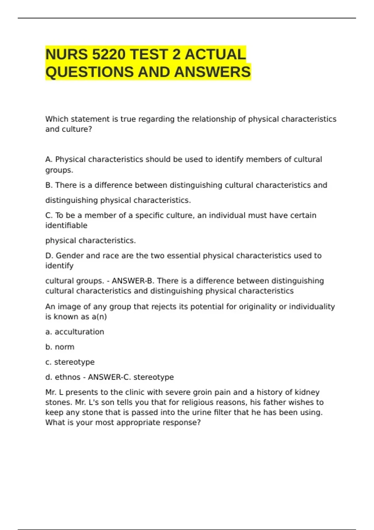 NURS 5220 TEST 2 ACTUAL QUESTIONS AND ANSWERS