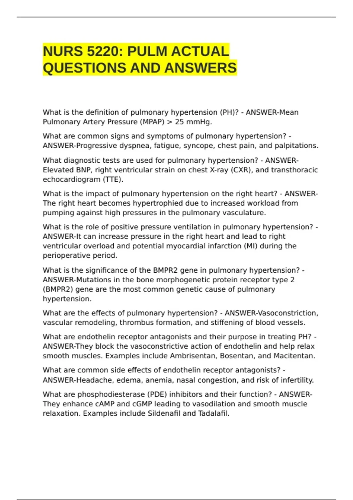 infarction (MI)? - ANSWER-Patients with pulmonary hypertension are at