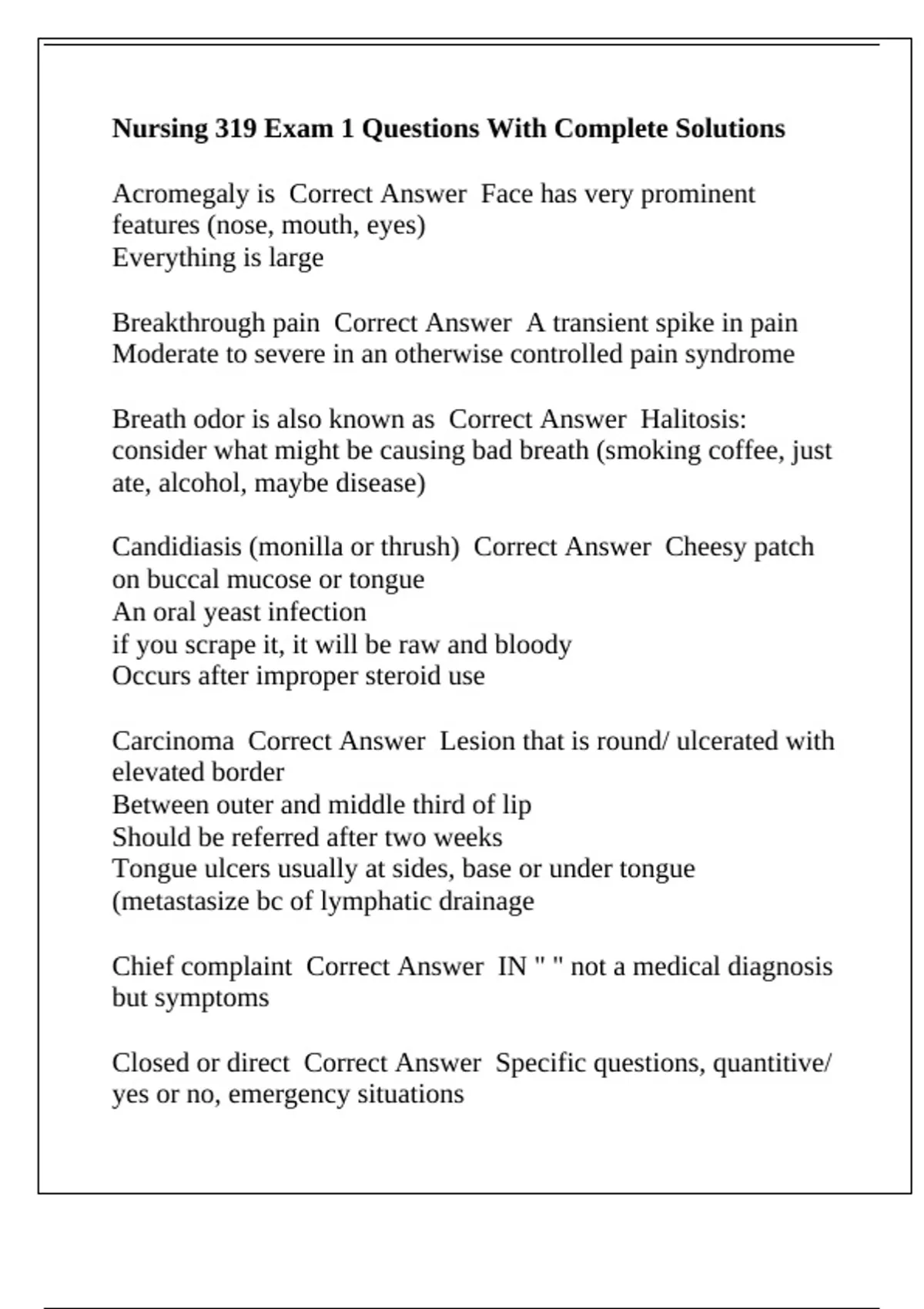 , Complete data base Correct Answer Health history