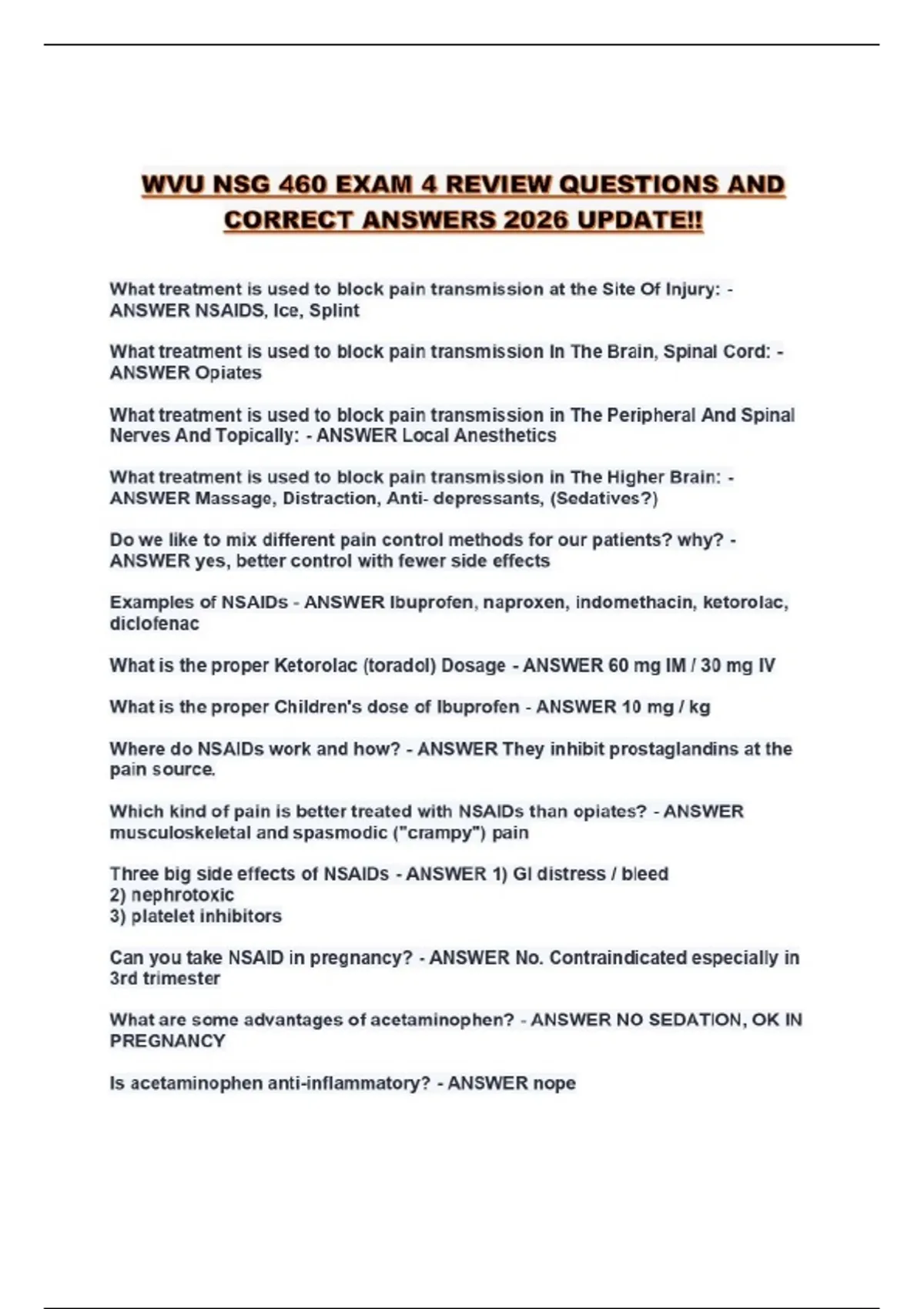 WVU NSG 460 EXAM 4 REVIEW QUESTIONS AND CORRECT ANSWERS 2026 UPDATE!!...