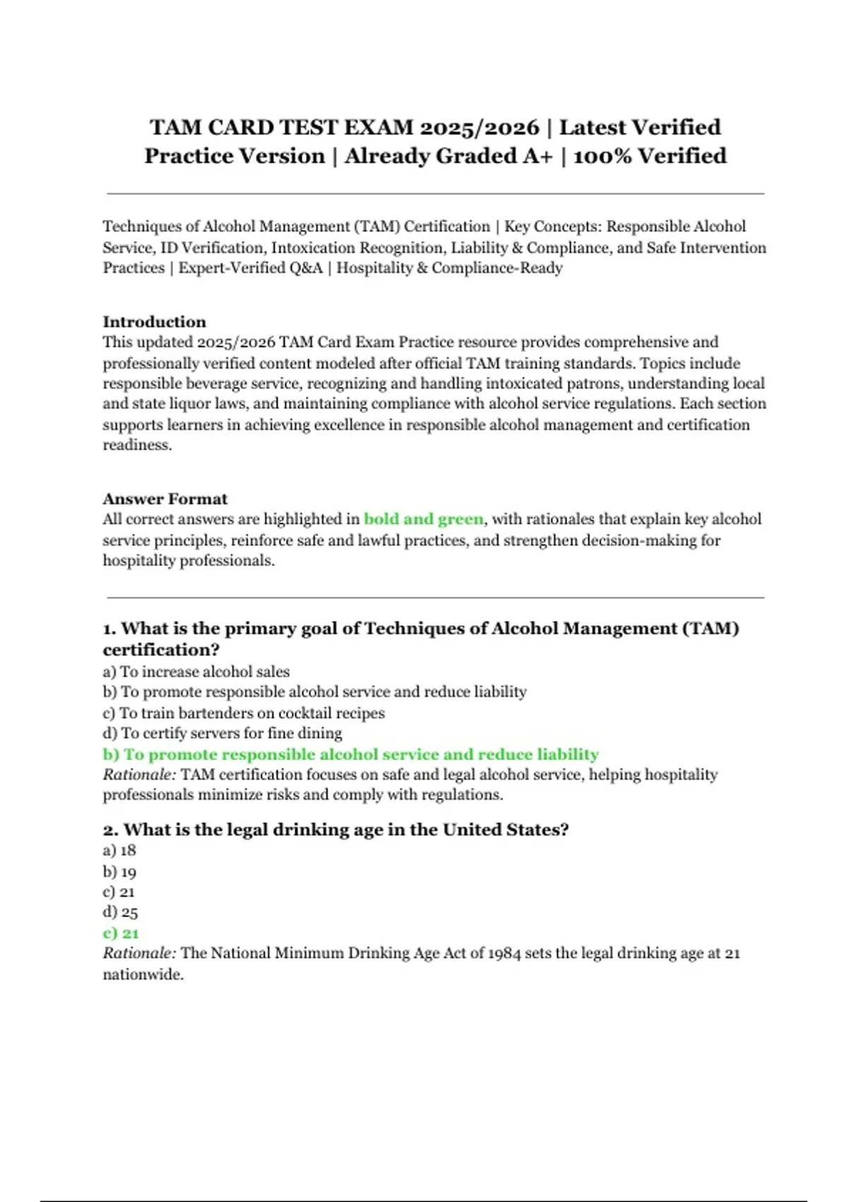 This updated 2025/2026 TAM Card Exam Practice resource provides comprehensive and